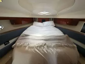 Double island forward master cabin with custom mattress, plenty of storage and en-suite access to day head with separate shower.
