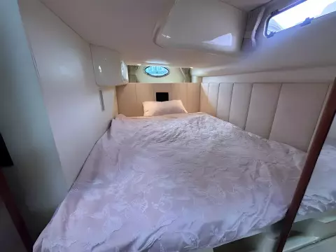 Aft cabin with twin or double berth with in fill, vanity sink with plenty of storage.
