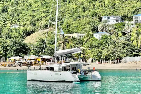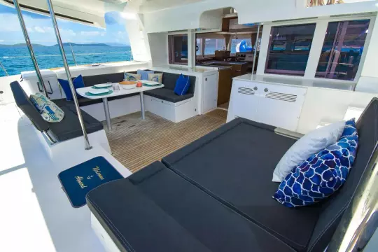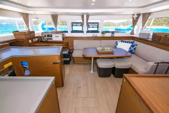 2018 Lagoon 450F "Rapscallion" The naval architects at VPLP, together with Lagoon and the Nauta design firm, successfully met the challenge in creating the 450F. Larger and with greater sail area than her predecessor, she benefits from advances in safety, comfort, and performance. Rapscallion is an impressive example of this sought-after model. As a 4-cabin/4-head version, she's ideal for cruising couples, families, or aspiring charter operators. Her twin 2018 Yanmar 4JH57 engines and FlexFold propellers ensure responsive handling under power, while Ullman Dacron sails and quality Harken winches deliver solid sailing performance. She's equipped for long-term, off-grid cruising with a watermaker, Onan 11kW generator, and a large house battery bank. The spacious galley includes full refrigeration, a 3-burner gas cooktop, microwave, and more. With full B&G electronics, Starlink internet, safety gear, and a Highfield tender, Rapscallion is fully outfitted and ready for bluewater adventures.
