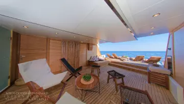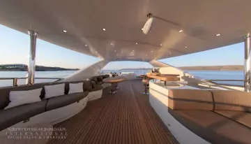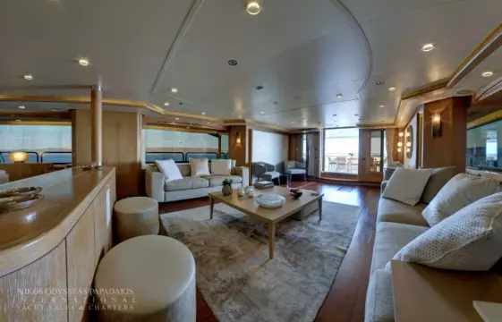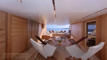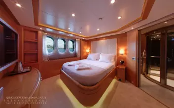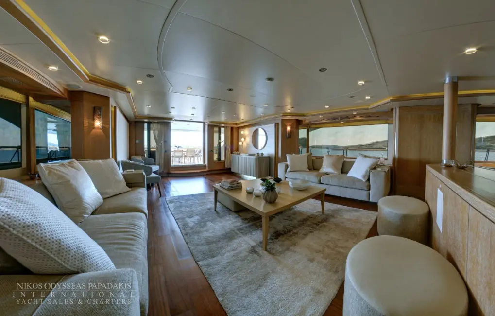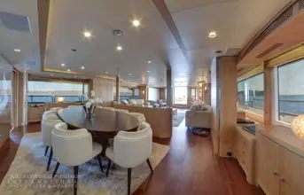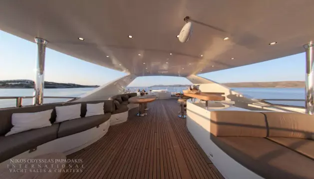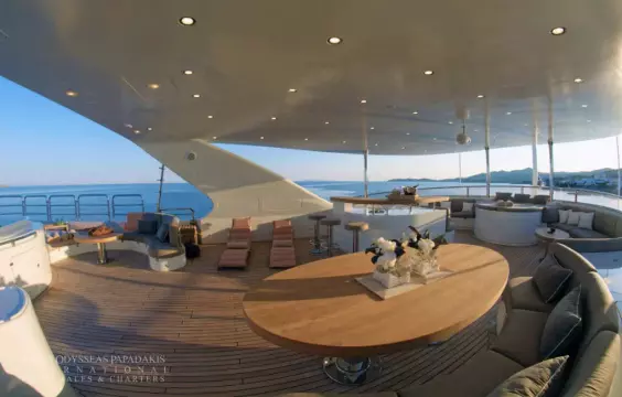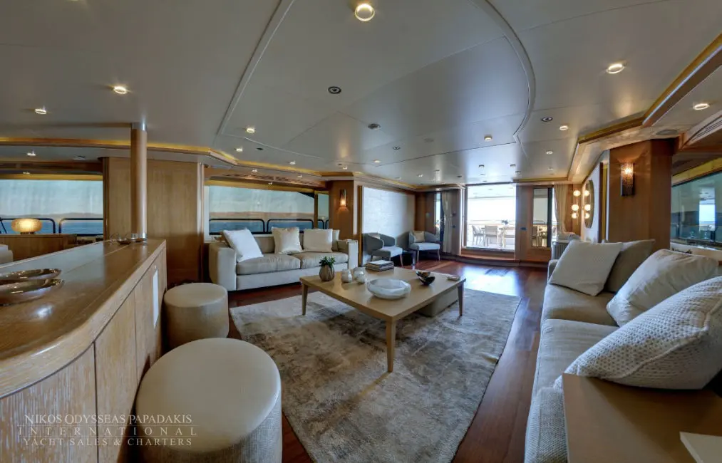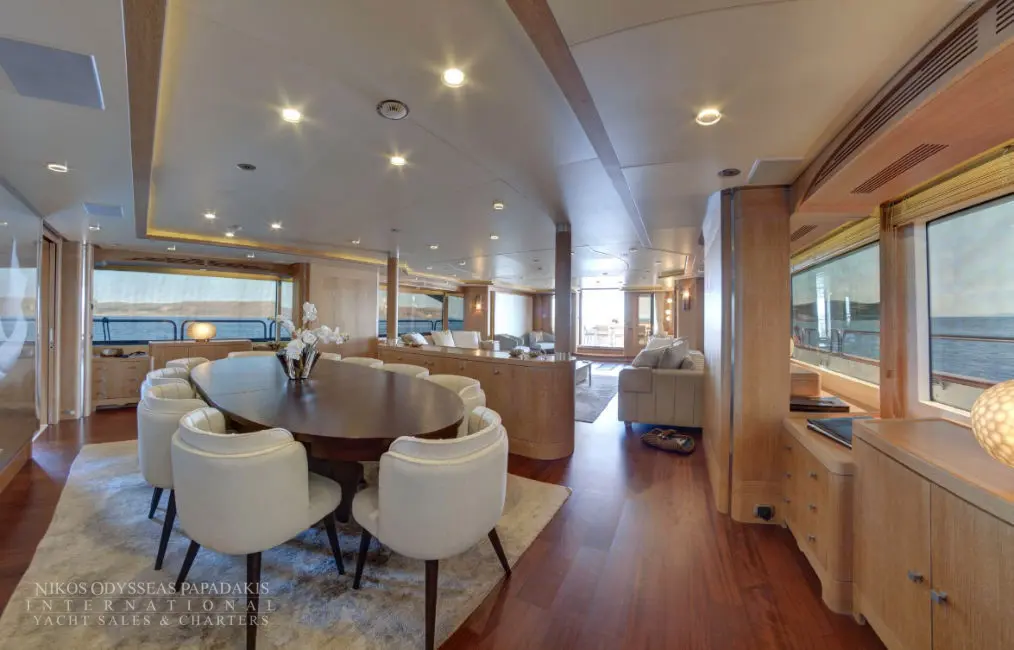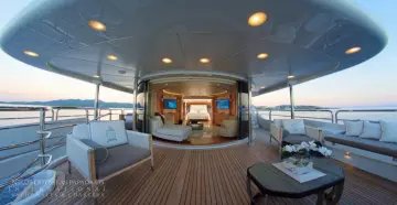 - Her contemporary decor accentuates the spacious feel through the yacht, as does the full-height sliding doors on both the main and upper deck.