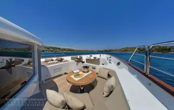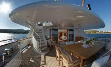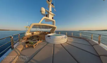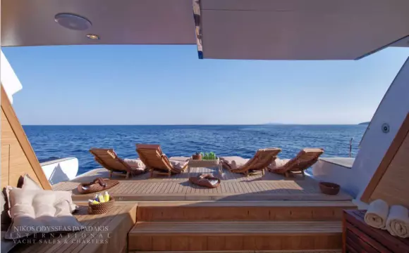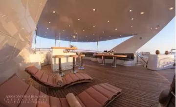 - Exceptionally voluminous unobstructed SUNDECK with oversized Pool JACUZZI, large sunbeds, al fresco dining, bar & Hard Top (major refits 2019, 2020, 2023). A large area of the Sundeck can be WELL PROTECTED from the sun and the wind with tents, creating an amazing place to enjoy during all hours of the day & night, even in windier and colder days.