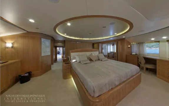 - The sophisticated cabin layout features a MASTER suite with fantastic 180 degree views, a private deck forward of the owners suite and an office room, which can be separated by the cabin to be used also as a common area.