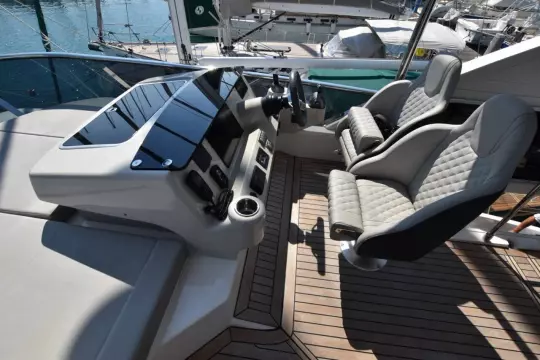 A powerful tropical-rated air conditioning system ensures cool, comfortable interiors even in the warmest climates. The water maker delivers independence on extended cruises, providing fresh water on demand without reliance on shore supply.
