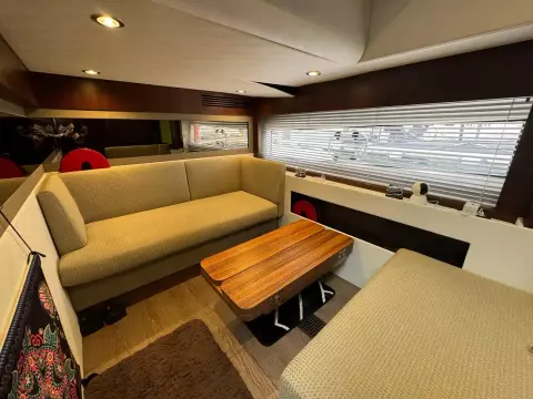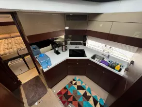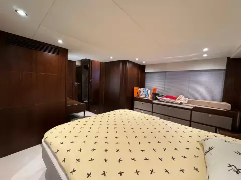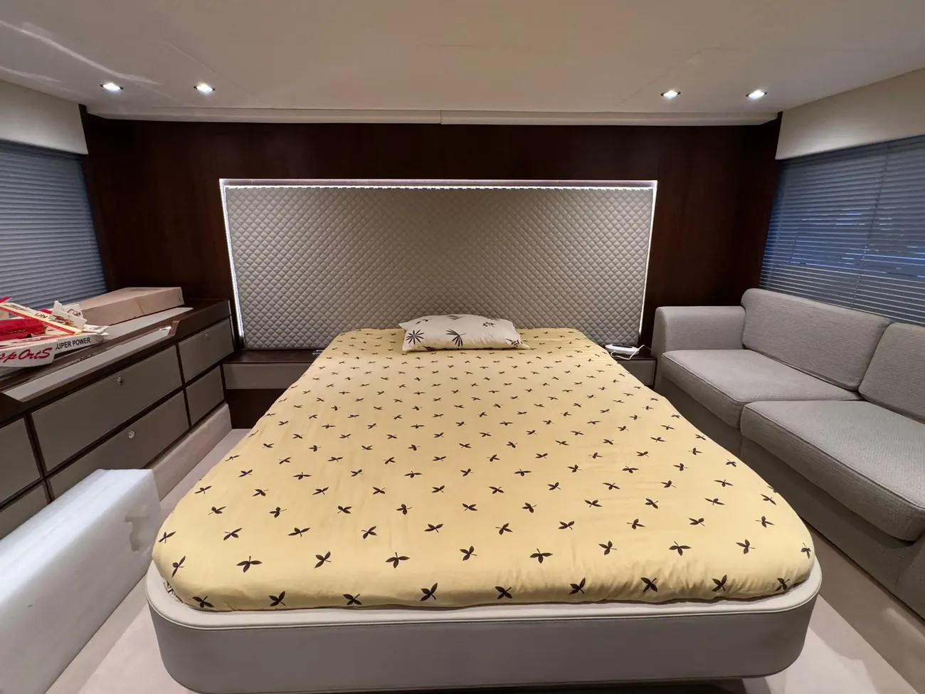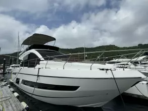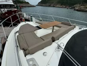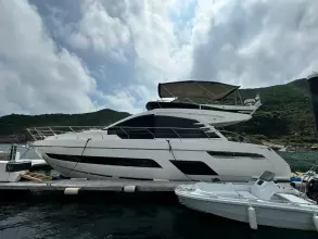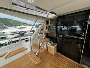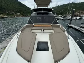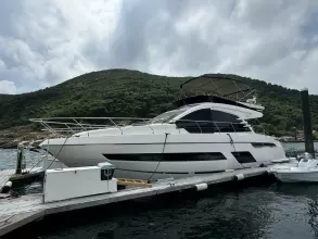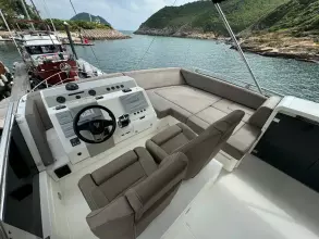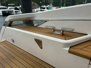 The Fairline Squadron 53 received widespread acclaim, and stands out with its striking and bold design. Guests can enjoy front-row seating at the Bow Lounge or unwind in the spacious Cockpit, which seamlessly connects to the Saloon.