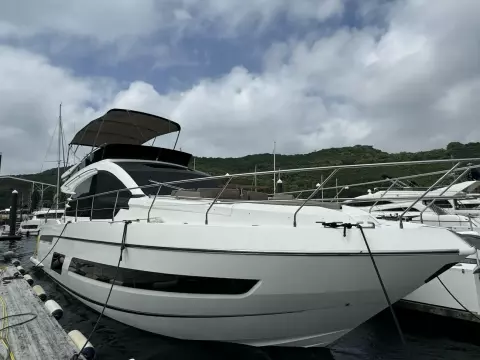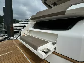 This 2018 Fairline Squadron 53 is in pristine condition having had only very light use, boasting just 275 engine hours on her twin Caterpillar C12 engines.