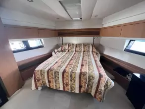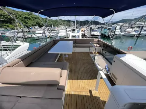 The outdoor living space is exceptionally well-balanced, highlighted by a spacious flybridge that includes a barbecue area, dining table, sun pads, and a secondary helm station. Additionally, an inviting sunbathing area is located on the bow, providing more opportunities to soak up the sun. Experience the perfect blend of luxury and functionality aboard the Fairline Squadron 50!