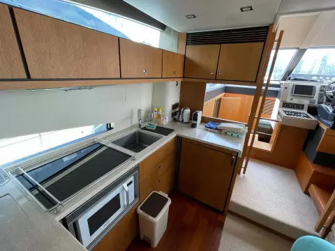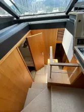 Hydraulic bow and stern thrusters with twin joysticks and helm stations on both the lower level and the flybridge facilitate easy navigation of the Fairline Squadron 65 in and out of her mooring.