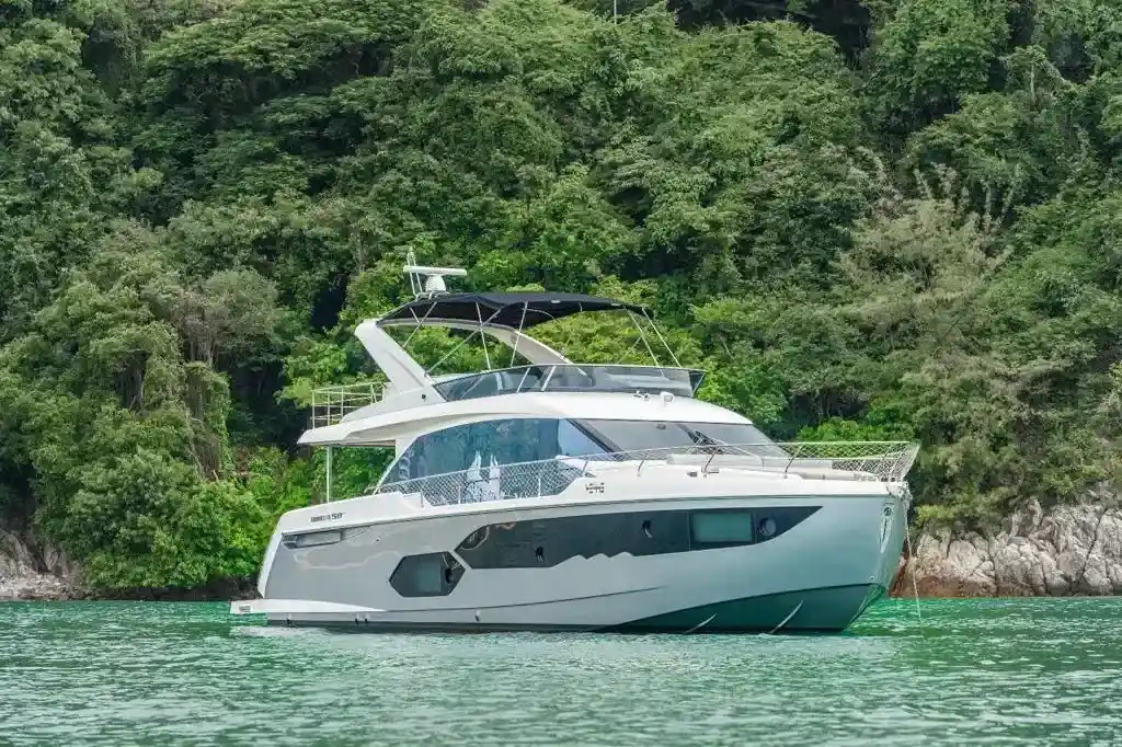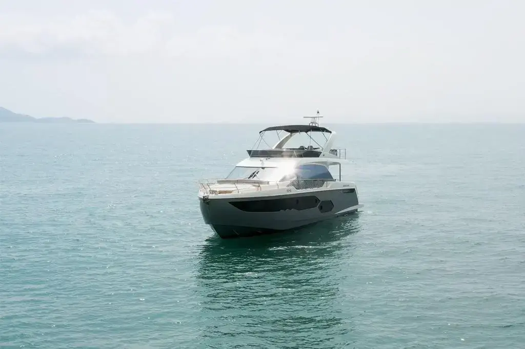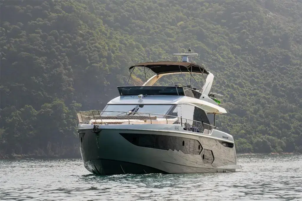 • Anthracite grey-colour flybridge Bimini Top with lights and closing sheet