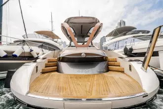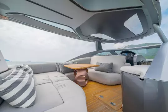 This 2019 Tecnomar 55 EVO is well presented for sale and is an excellent choice for those planning remarkable boating experiences in 2023 and beyond. Her specifications include twin Volvo IPS 950 engines with only 195 hours, a 13kW (Kohler) generator, and a spacious lounge on the lower deck instead of cabins. She has a comfortable cruising speed of 25-30 knots and a maximum speed of 38 knots. There are two large sun lounging areas on the main deck, making her ideal for day cruising. Available immediately, this yacht offers an incredible opportunity for immediate cruising. For viewings and further information on this 2019 Tecnomar 55 EVO, please contact us today!