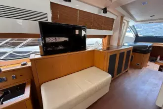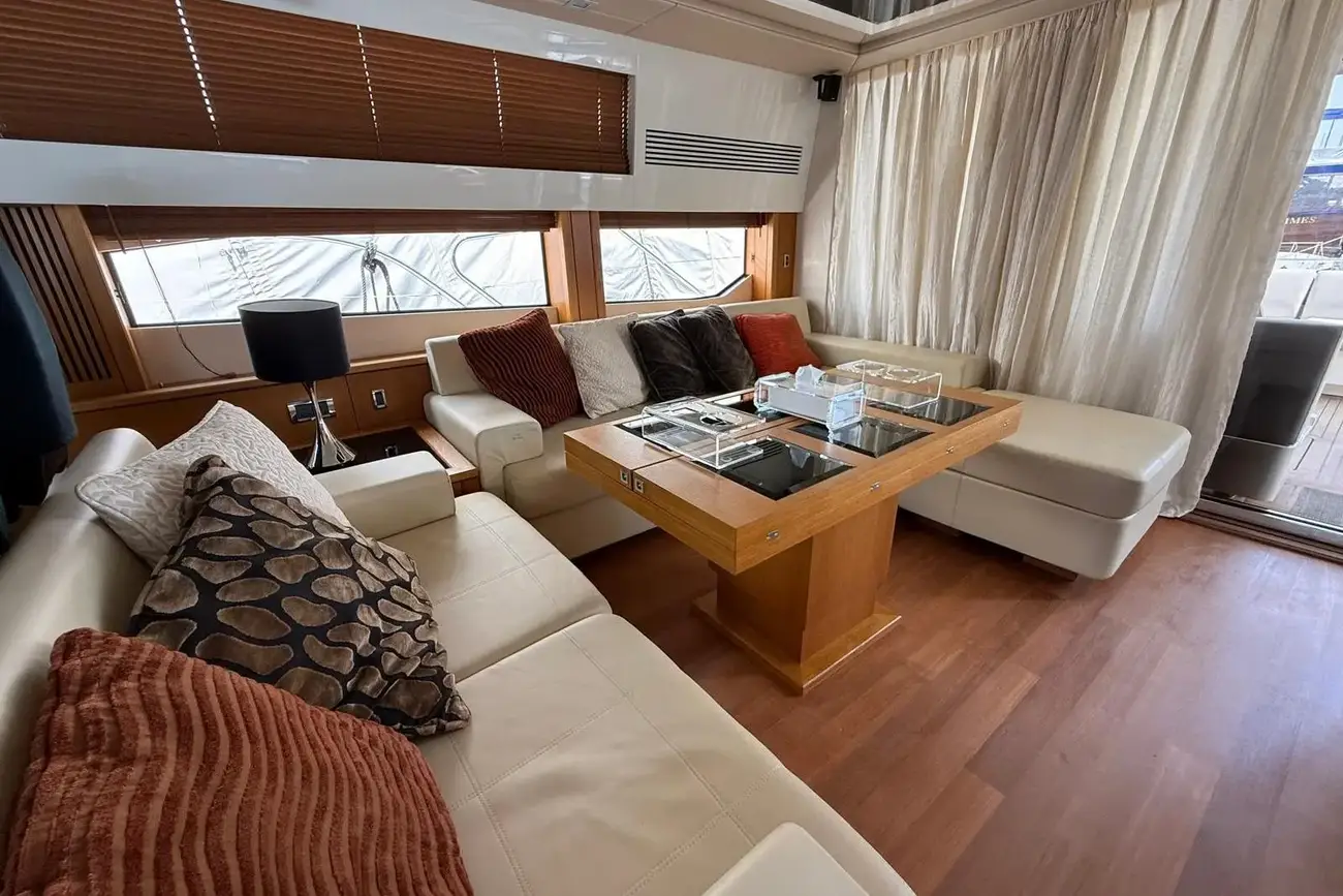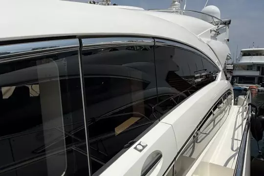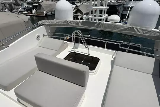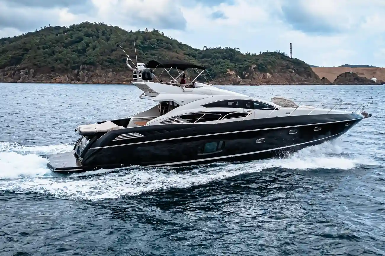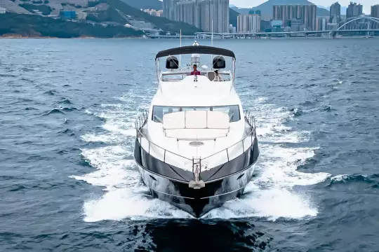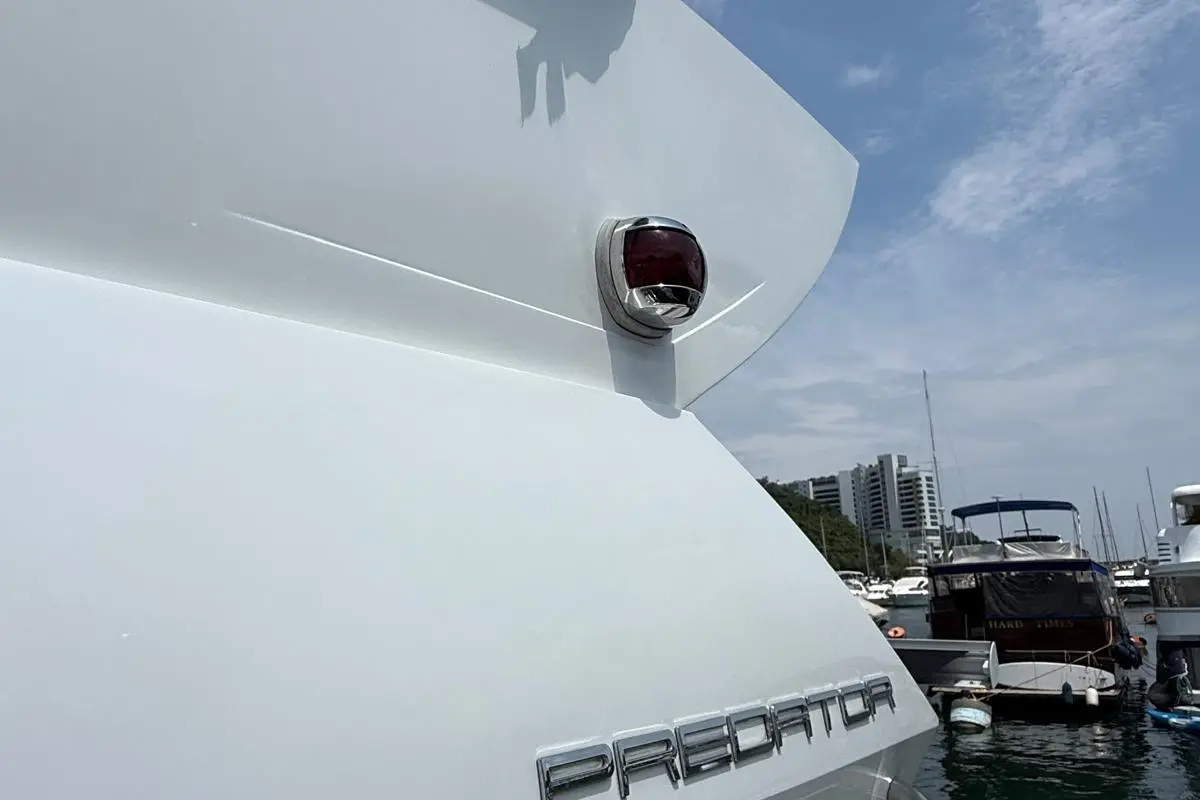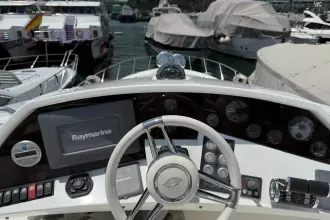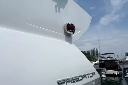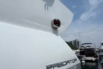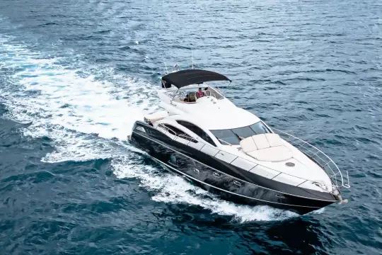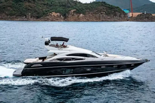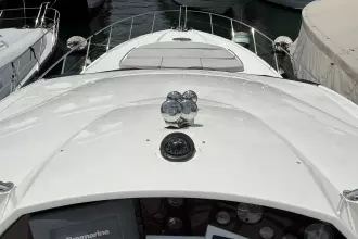 Introducing the stunning 2011 Sunseeker Predator 74, a remarkable sports cruiser that combines elegance with high performance. With an overall length of 73 feet, this vessel features a sleek fiberglass hull designed in a deep vee shape, ensuring smooth navigation and stability on the water. Powered by twin MAN V12 engines, each delivering an impressive 1800 horsepower, the Predator 74 achieves a cruising speed of 25 knots and a maximum hull speed of 38 knots, making it perfect for exhilarating adventures. With a range of 380 miles, you can explore far and wide with confidence. The interior boasts four well-appointed cabins and four heads, providing ample space for relaxation and comfort. Additional features include an electric windlass for effortless anchoring. This used beauty is ready to offer unforgettable experiences on the water, combining luxury and performance in one exceptional package.