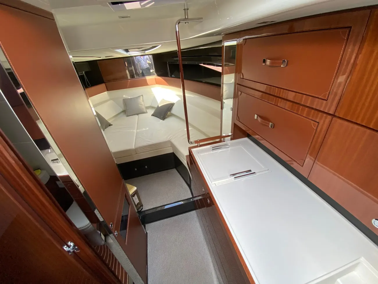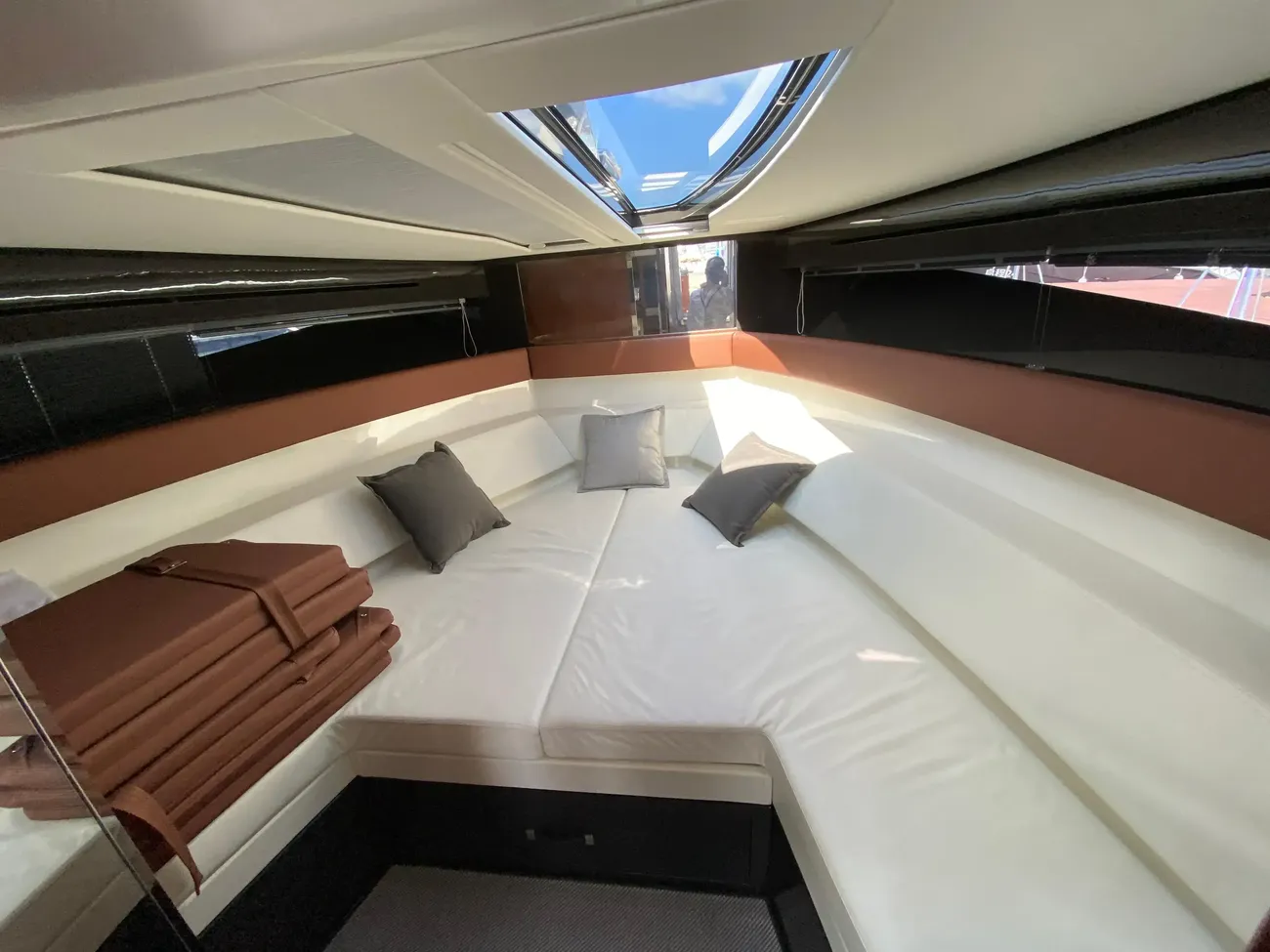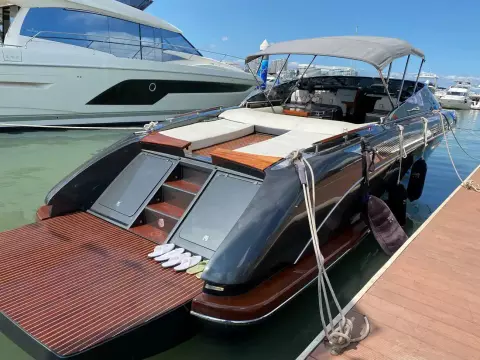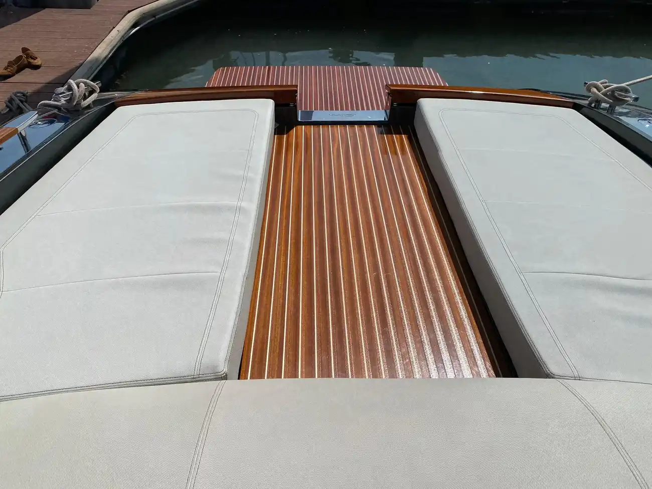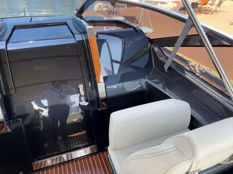 This 2018 Riva Rivamar 38 is a sleek and elegant speedboat designed by the renowned Officina Italiana Design in partnership with Riva. It combines sporty aesthetics with Riva’s signature high-class style.