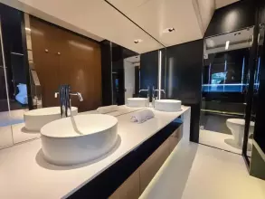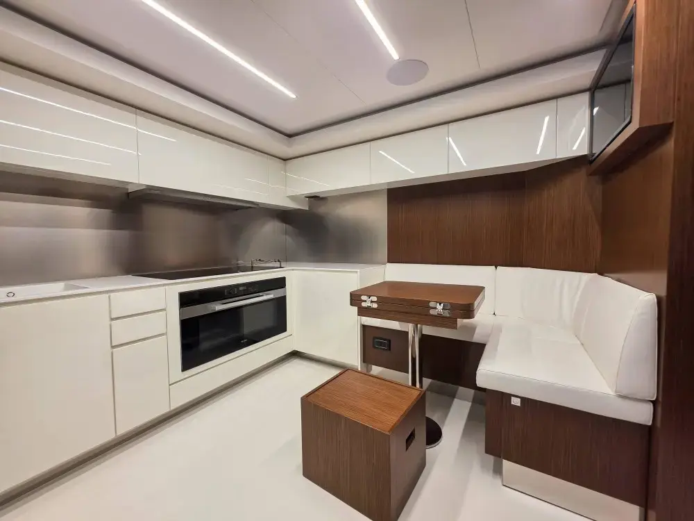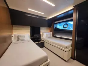 Twin MTU engines, 2,638 hp, delivering speeds up to 28 knots.