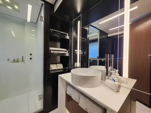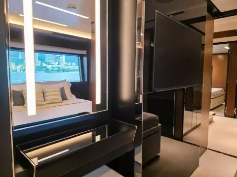 Equipped with features like a gyroscopic stabilizer, a hydraulic bathing platform, and advanced navigation systems.