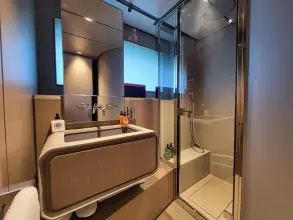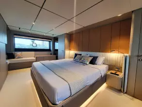 Notably, this particular yacht is equipped with upgraded MAN engines (2 x MAN V12 1800), offering a significant performance enhancement over the standard propulsion system (2 x MAN V12 1550).