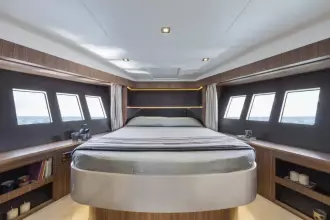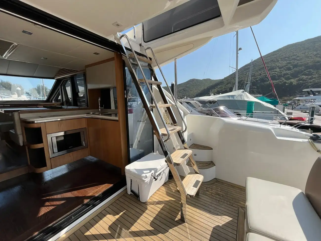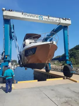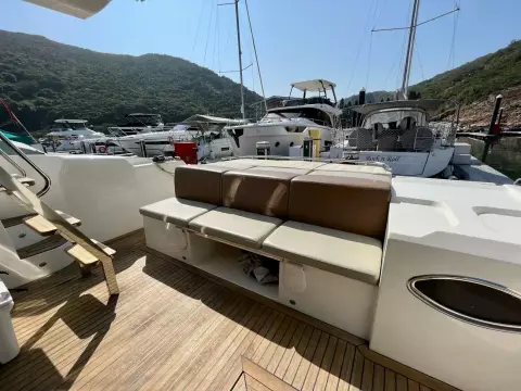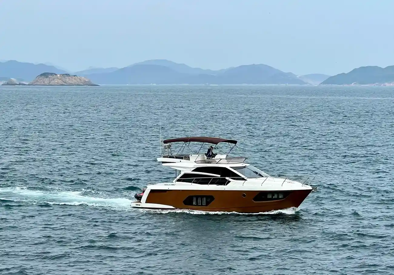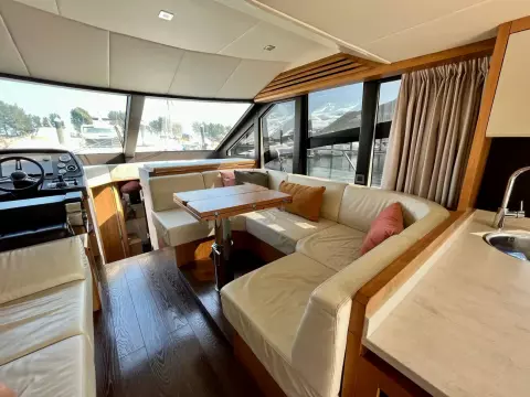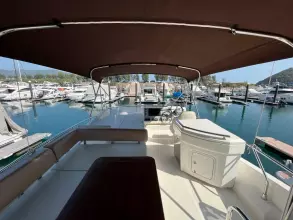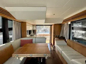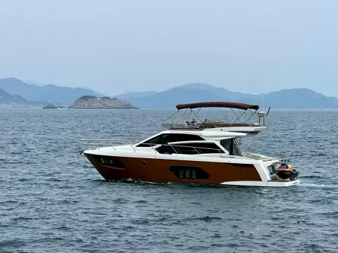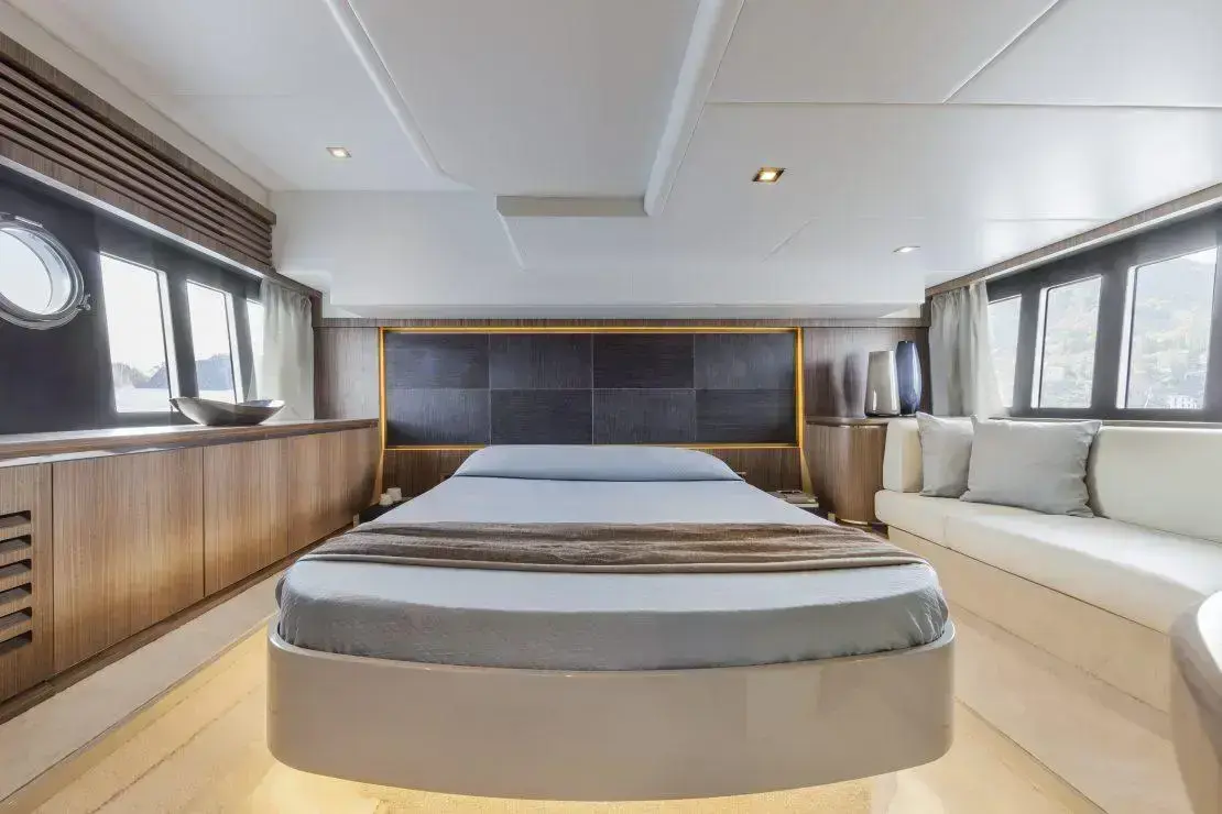 The salon is designed for comfort and social interactions and is a testament to the yacht's blend of luxury and practicality. The interior comprises a suite master cabin, a VIP cabin, a crew grill, a large U-shaped sofa, and a sun pad adjacent to the upper helm, which offers an elevated view and is perfect for entertaining. The hydraulic swim platform at the stern not only facilitates water activities but also serves as a convenient spot for placing a tender or a jet ski, with a maximum lifting capacity of 250 kg.