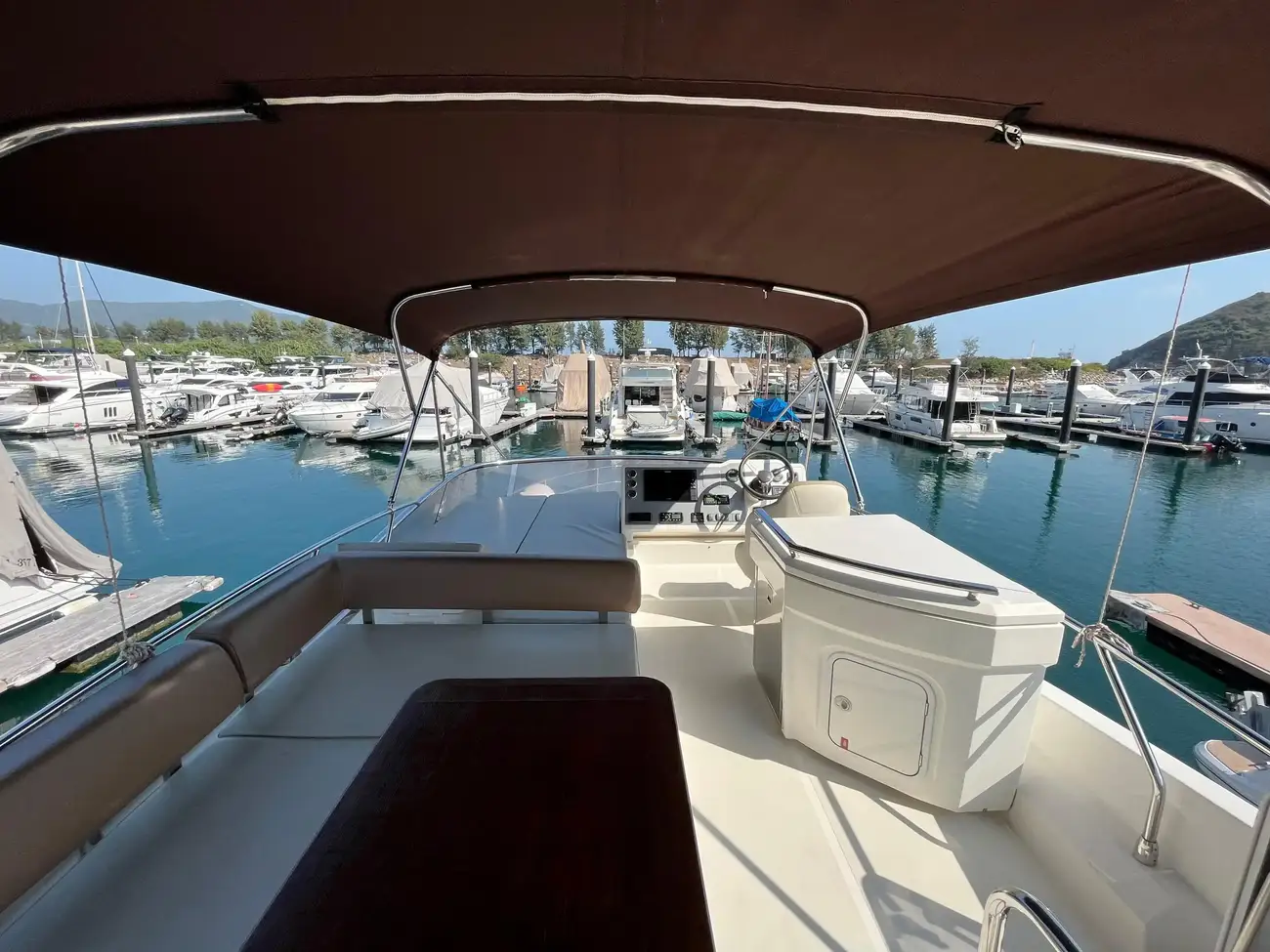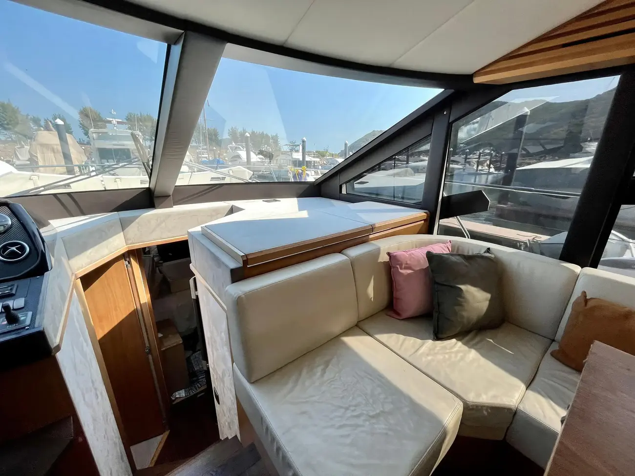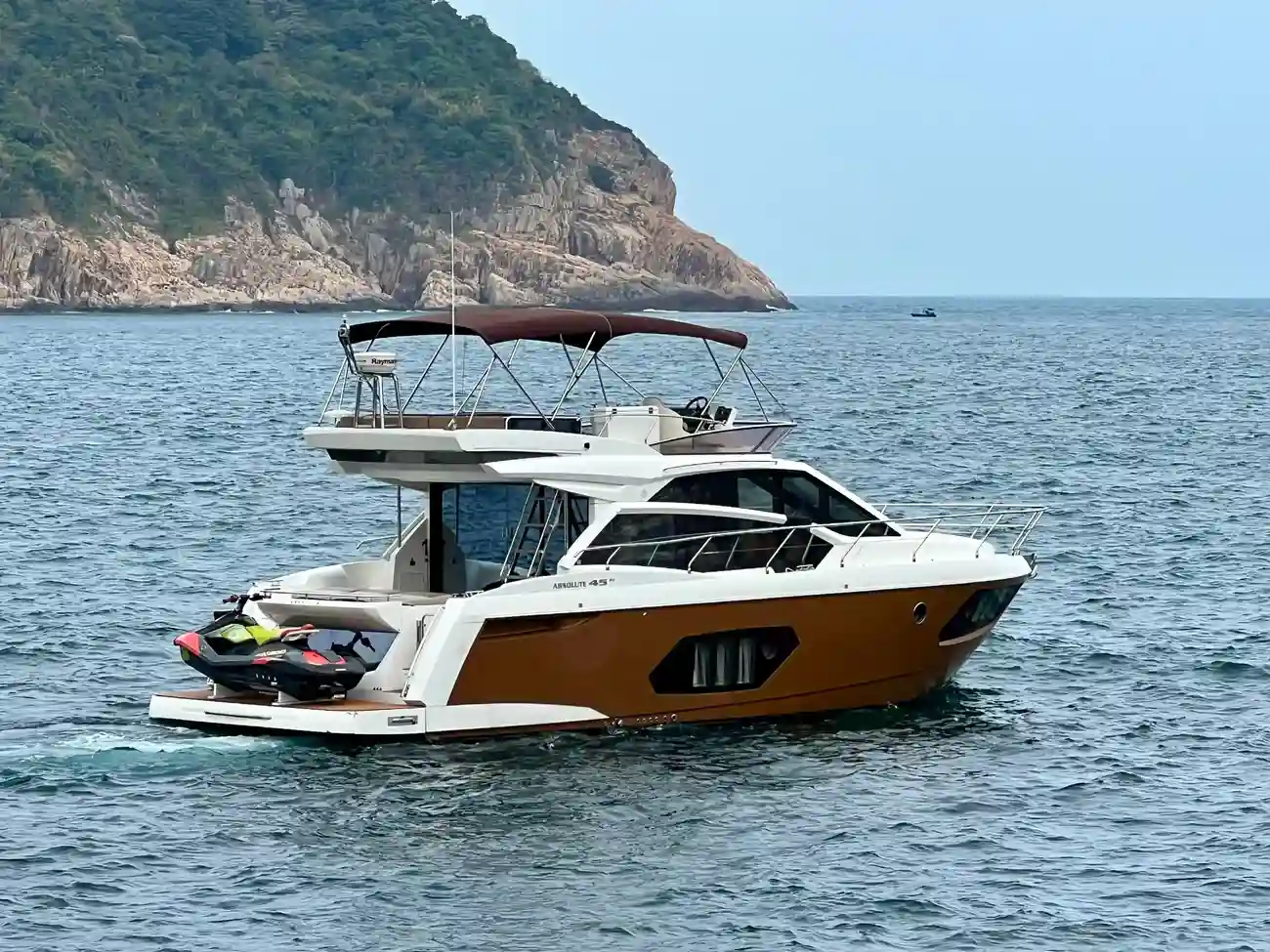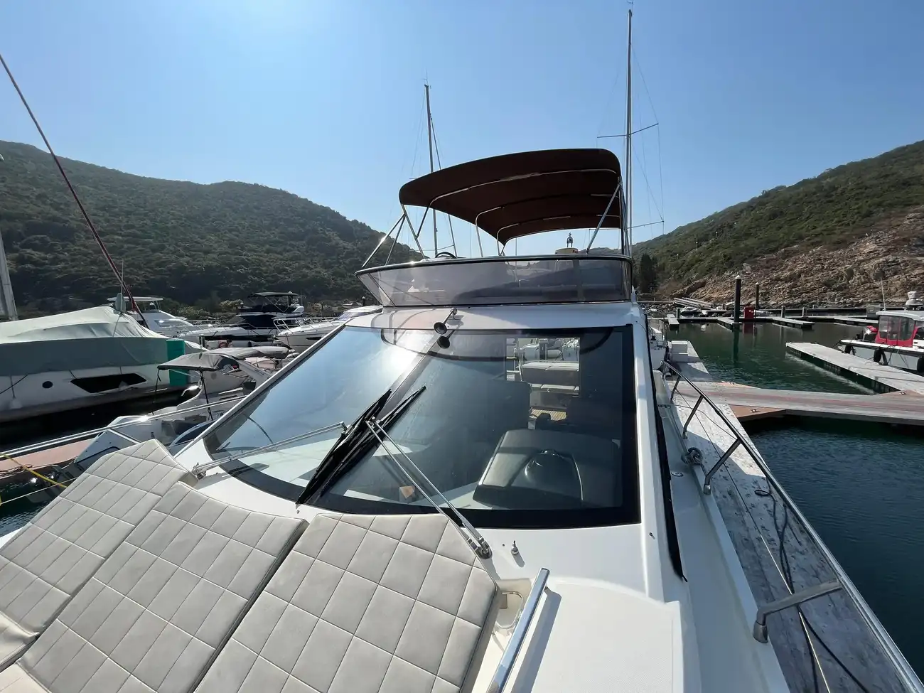 The salon is designed for comfort and social interactions and is a testament to the yacht's blend of luxury and practicality. The interior comprises a suite master cabin, a VIP cabin, a crew grill, a large U-shaped sofa, and a sun pad adjacent to the upper helm, which offers an elevated view and is perfect for entertaining. The hydraulic swim platform at the stern not only facilitates water activities but also serves as a convenient spot for placing a tender or a jet ski, with a maximum lifting capacity of 250 kg.
