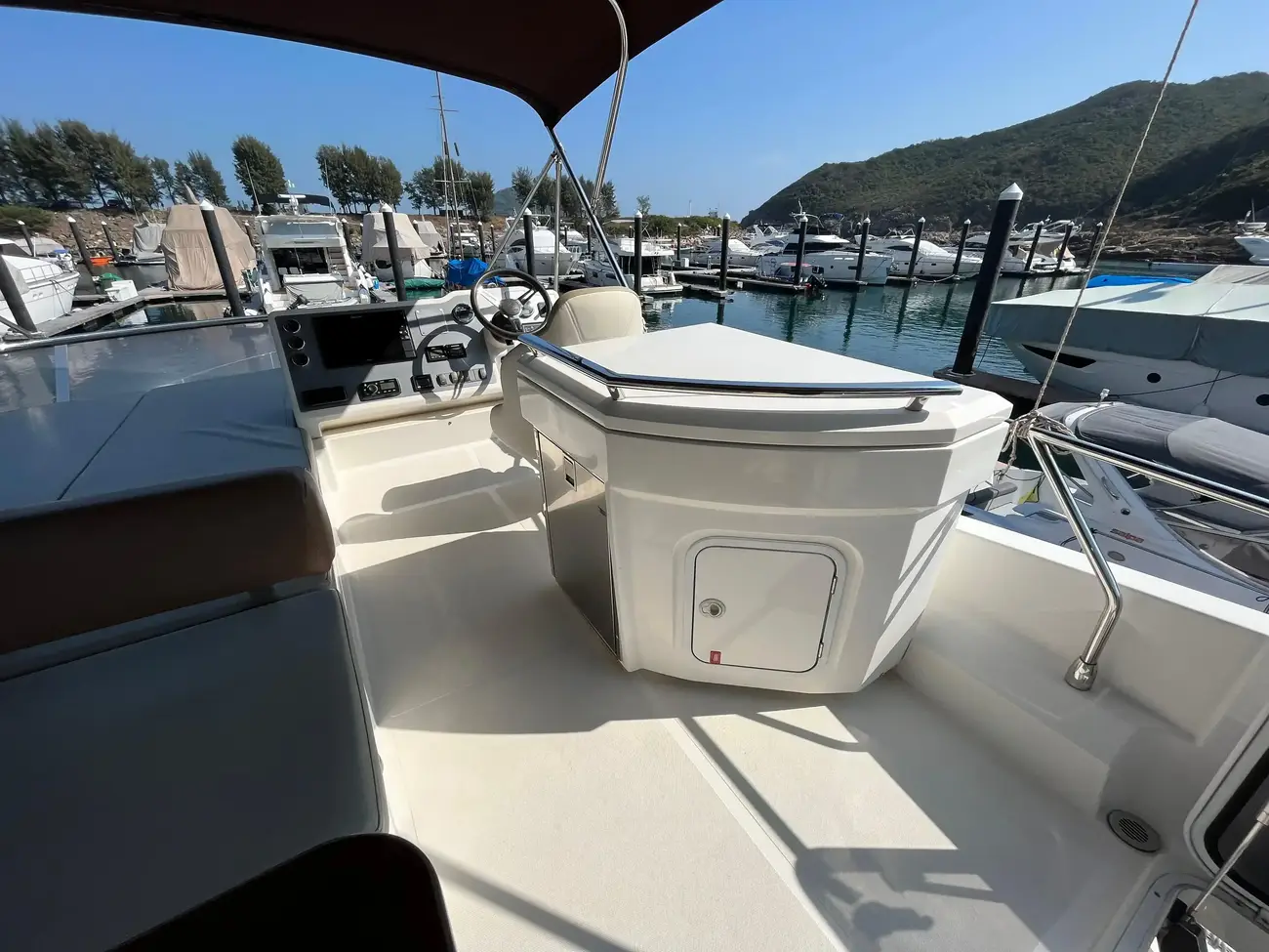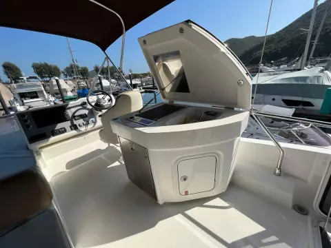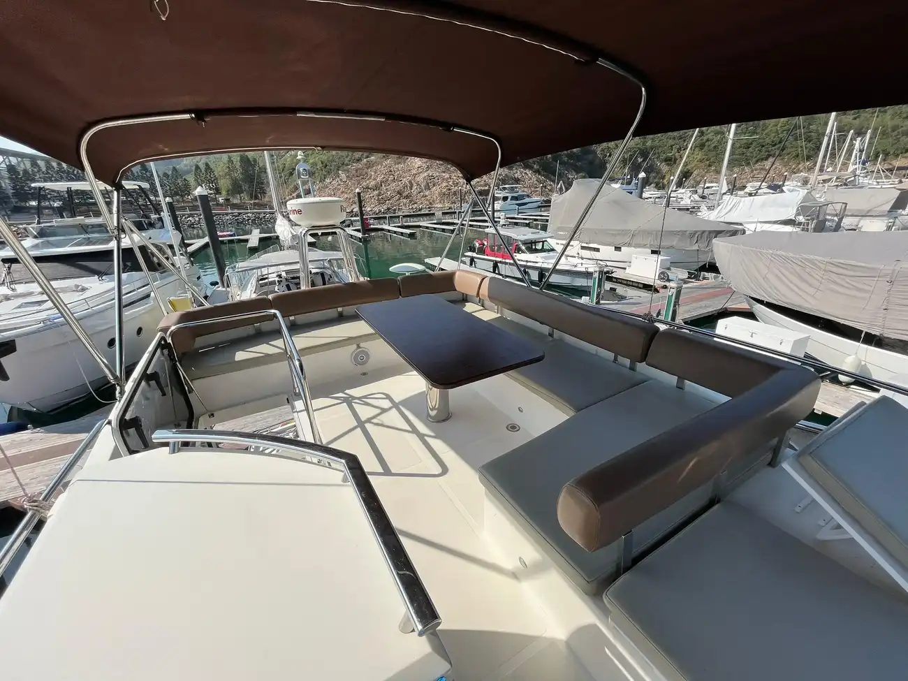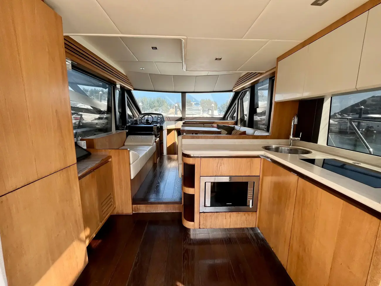 The salon is designed for comfort and social interactions and is a testament to the yacht's blend of luxury and practicality. The interior comprises a suite master cabin, a VIP cabin, a crew grill, a large U-shaped sofa, and a sun pad adjacent to the upper helm, which offers an elevated view and is perfect for entertaining. The hydraulic swim platform at the stern not only facilitates water activities but also serves as a convenient spot for placing a tender or a jet ski, with a maximum lifting capacity of 250 kg.