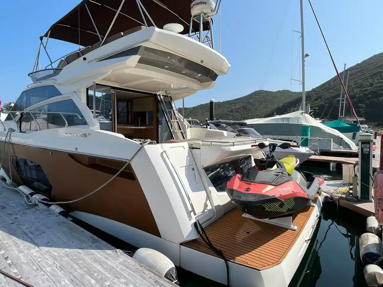 This 2016 Absolute 45 FLY offers a balanced mix of comfort and utility, making it a perfect choice for boating enthusiasts. For viewing and further information on this 2016 Absolute 45, please contact us!