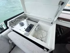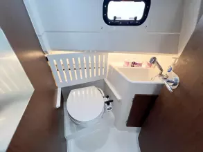 With the twin Suzuki 250 HP, she can reach maximum 32 knots and comfortable crusing speed at 25 knots. It is great for a comfortable cruise for a whole family or fishing trips, invite a few friends and enjoy the sunset together!