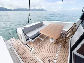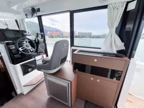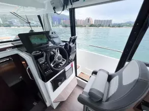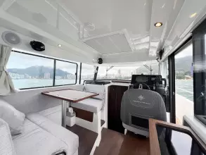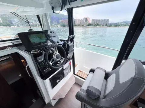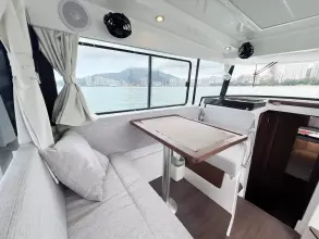 This particular boat has added a generator and air conditioning recently; generator hours (11 hours) and engine hours (40 hours); it just arrived Hong Kong in 2023 and the owner only used it a few times so it is basically a brand new boat. This boat is equipped with trim tabs, bow thruster, aft and front cockpit teak table and more. She is a great boat for family cruises; however, filled with the spirit of a fishing boat from the heart to her hull design.