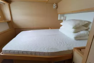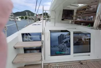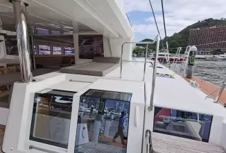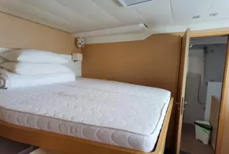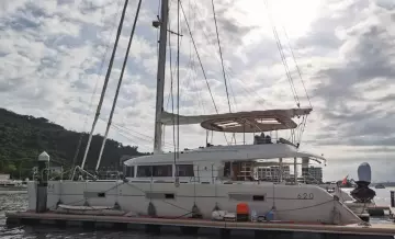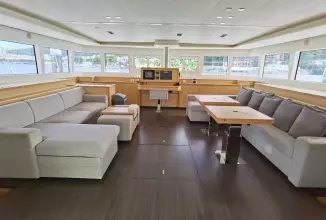Measuring 62 feet in length, the Lagoon 620 offers ample space for both relaxation and entertainment. On deck, the Lagoon 620 boasts a spacious flybridge, a large aft cockpit, and a forward cockpit, providing plenty of outdoor living space. The yacht is equipped with modern amenities such as air conditioning, and a generator, ensuring a comfortable experience on board.