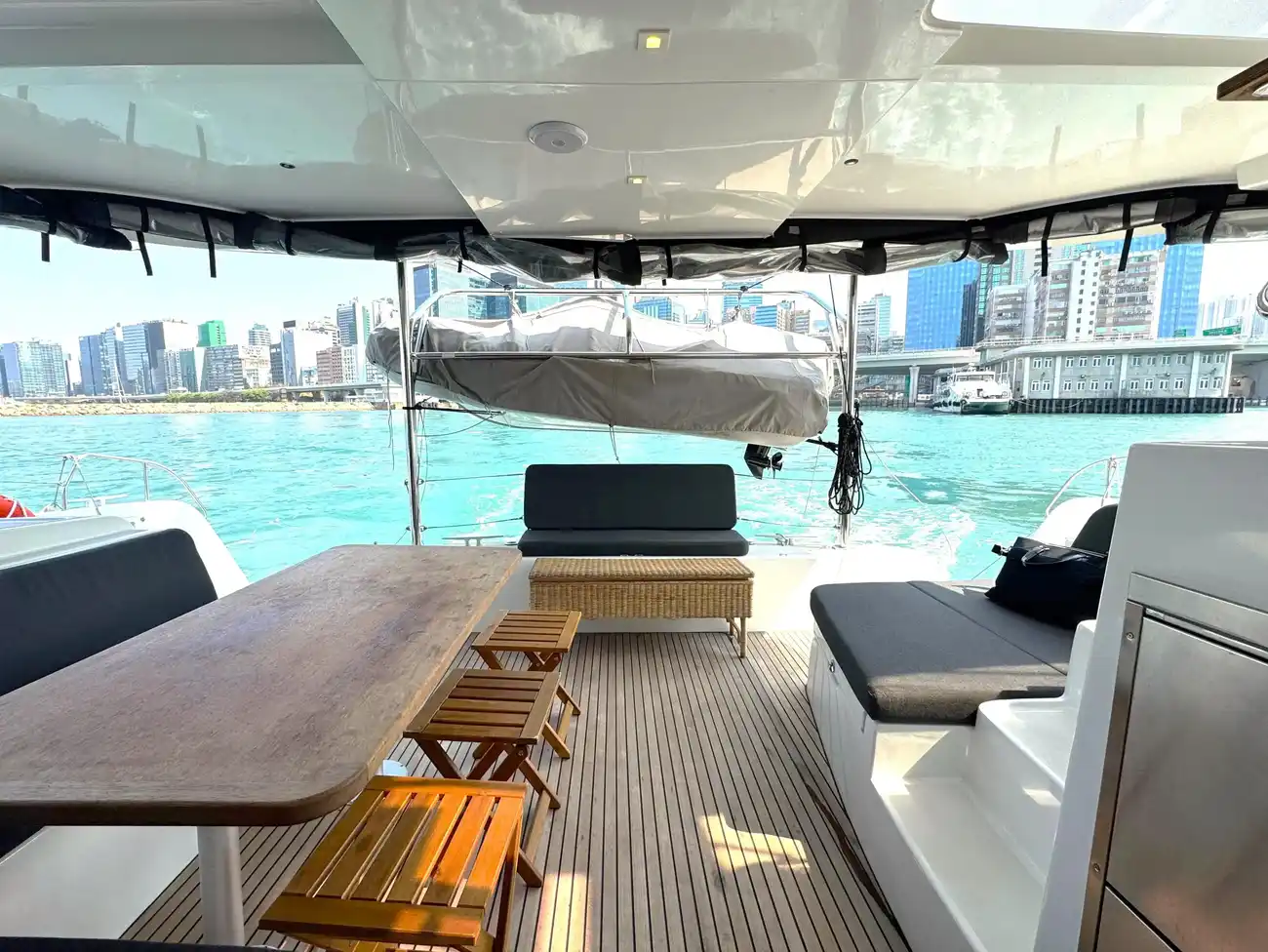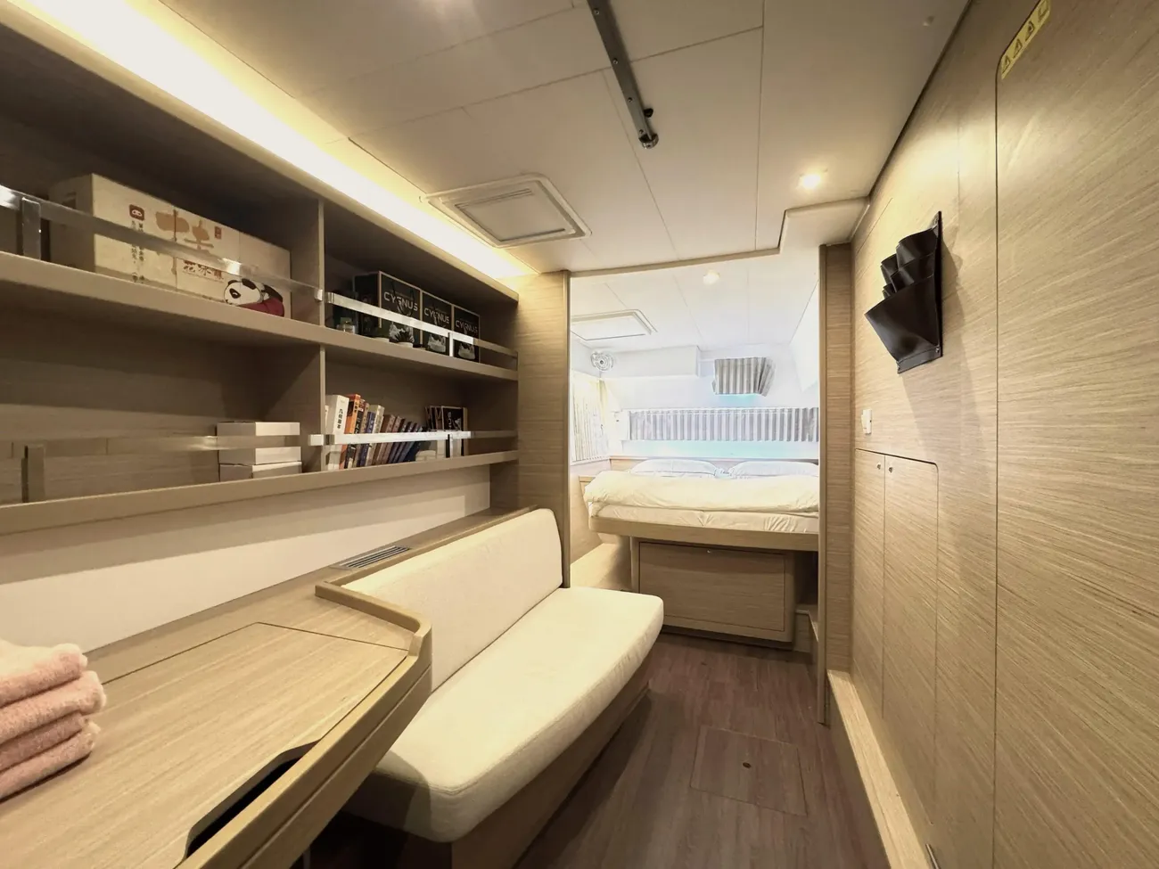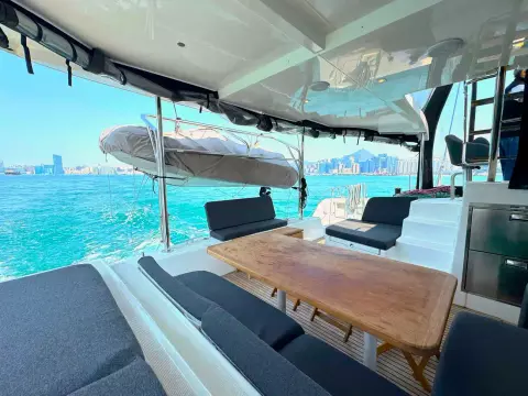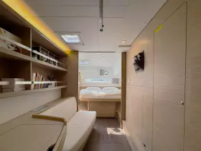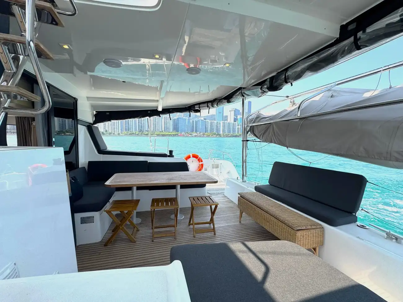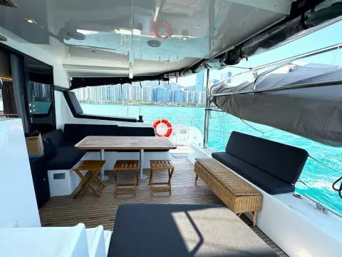 This 2022 Lagoon 42 has a hull number in 2023. It is powered by 2 Yanmar 57HP engines, with a cruising speed at around 8 knots. This vessel is a charter version boat which has 3 cabins at the lower deck, makes it ideal for a big family or people who is considering starting a charter business.