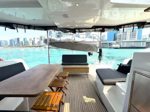 Lagoon 42 is one of the most popular sailing catamarans with its step-up helm station at the flybridge. The flybridge was considered innovative and it was highly praised by users with its great accessibility for both skippers and guests to move around.