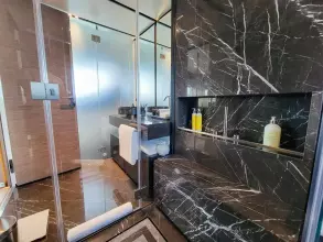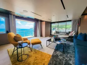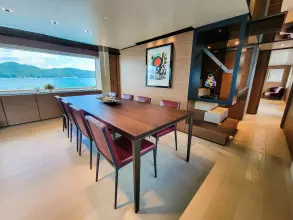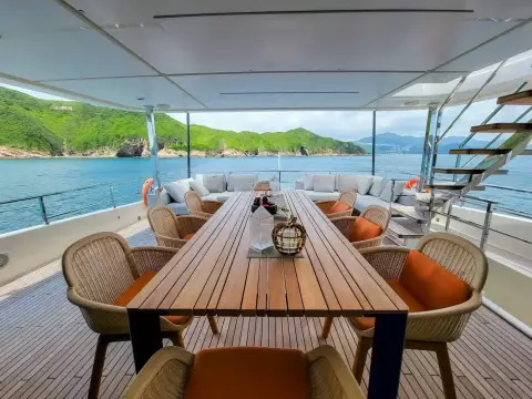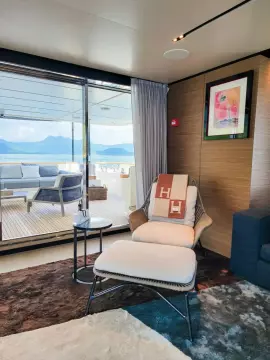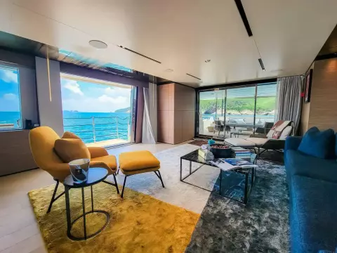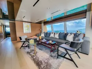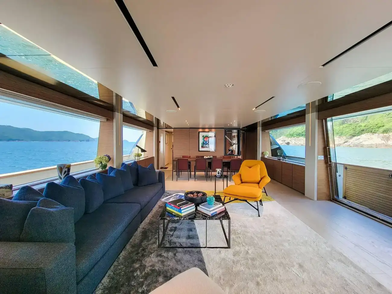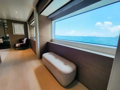 Step inside to find interiors that reflect both the Navetta 33’s vision and the owner’s unique character. The wide-body master suite on the main deck and the stylish guest cabins below set a standard of elegance. The yacht offers fabulous spaces across all four decks, featuring expansive windows and a sun deck with a jacuzzi​.