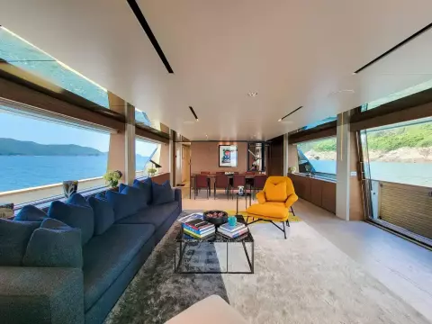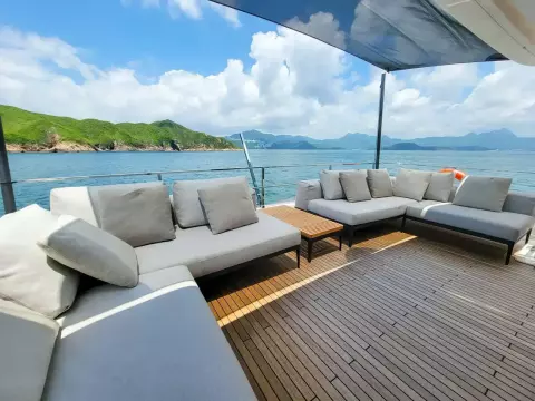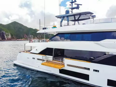 Custom Line’s cutting-edge technology ensures comfort and stability in all conditions. The patented Dual Mode Transom system expands living and entertainment spaces, making the stern area an ideal spot for relaxation.
