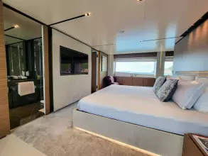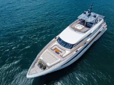 The 2019 Ferretti Custom Line Navetta 33 epitomises luxury and sophistication on the water. This stunning yacht combines elegant design with advanced technology, ensuring you always make an impression. The ingenious bulbous bow provides exceptional stability and seaworthiness, offering a remarkable range of approximately 2,000 nautical miles​.