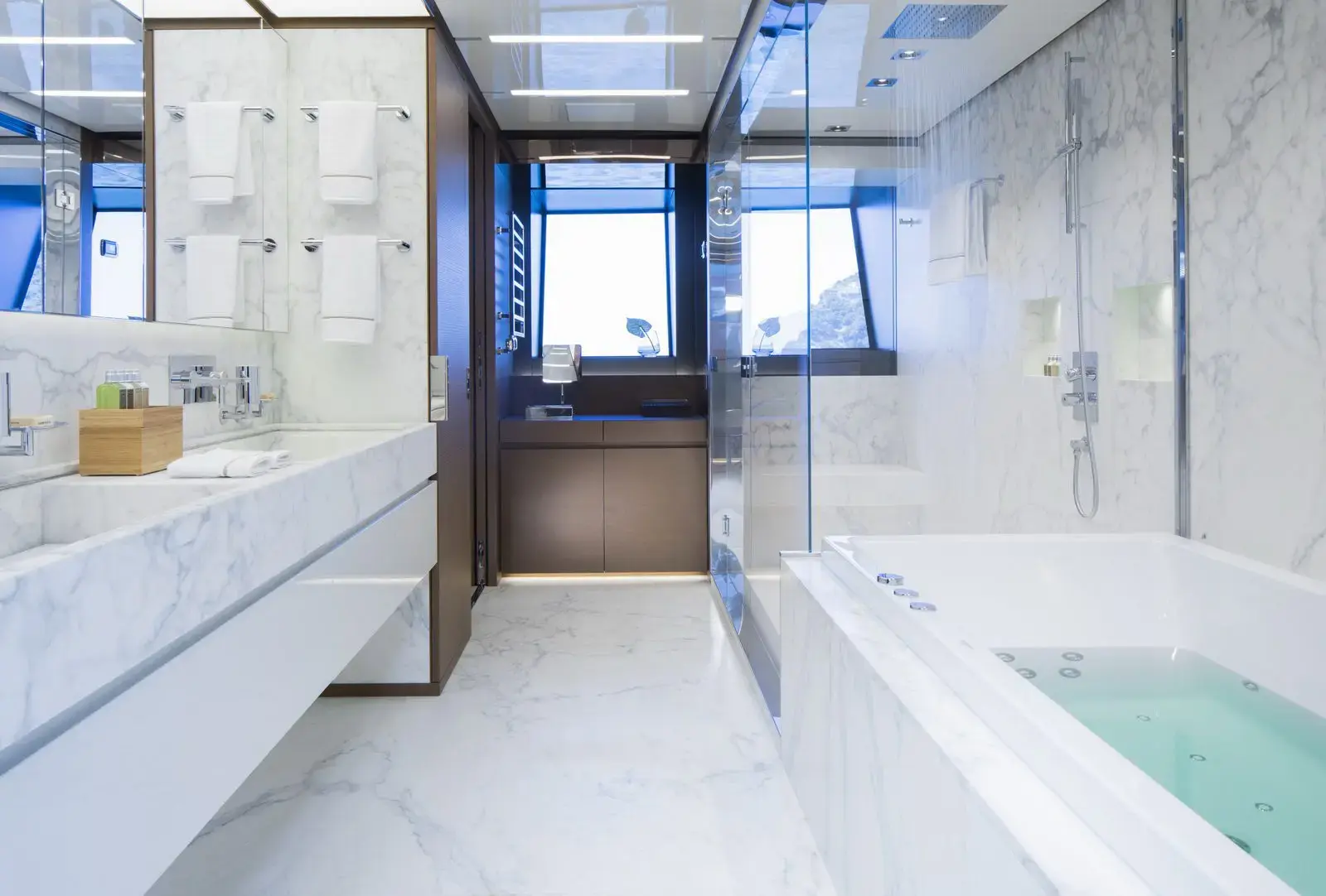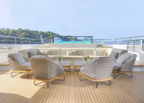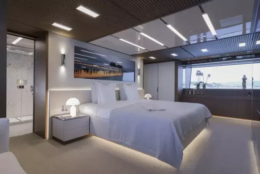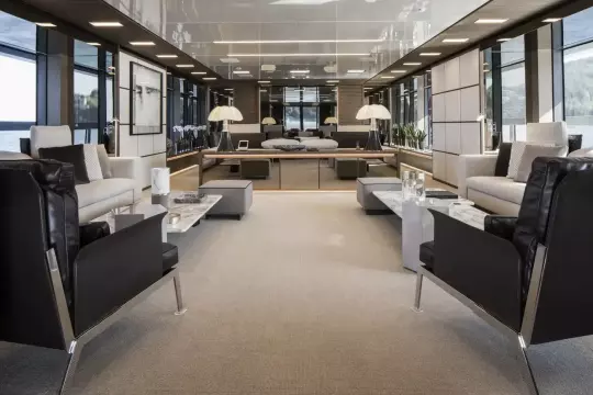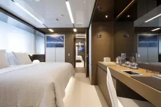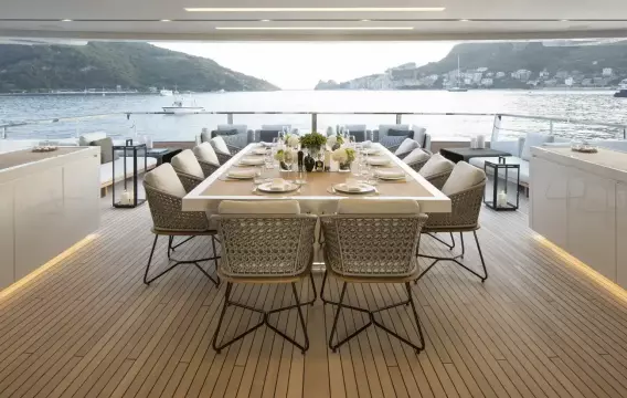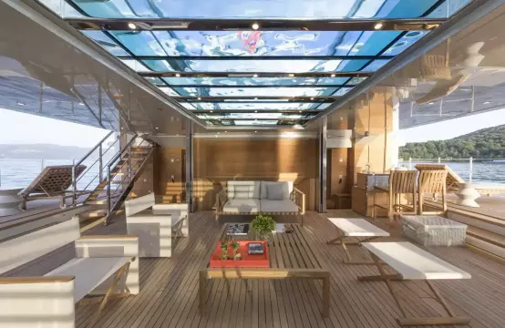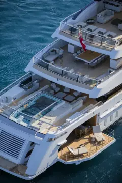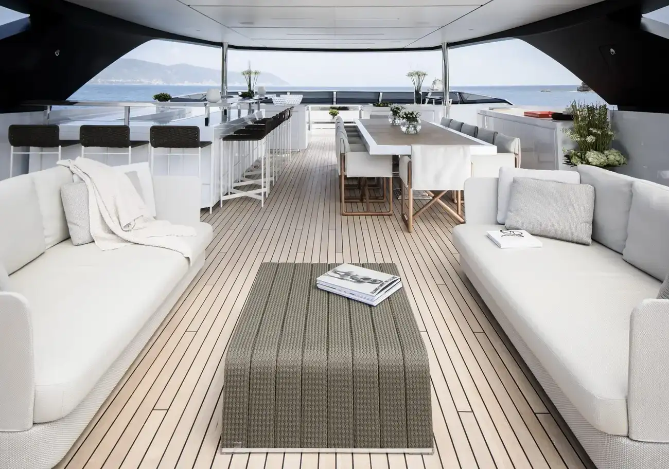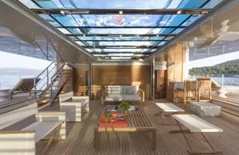The 52Steel is a five-deck superyacht with endless customisation possibilities. The external lines, drawn in collaboration with Mauro Michieli’s Officina Italiana Design, are a natural evolution of the Sanlorenzo superyacht range, and it perpetuates Sanlorenzo’s refined features, elegance and technical innovations. The 52Steel’s profile impresses with simple clean lines and two rows of extensive windows on the main and upper decks. The glass side deck bulwarks allow for cleaner lines and abundant natural light inside.