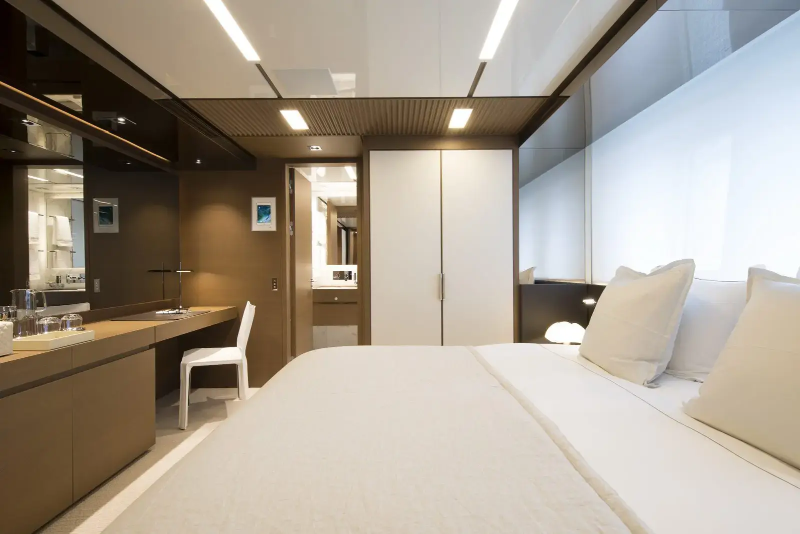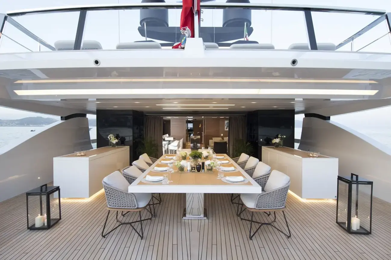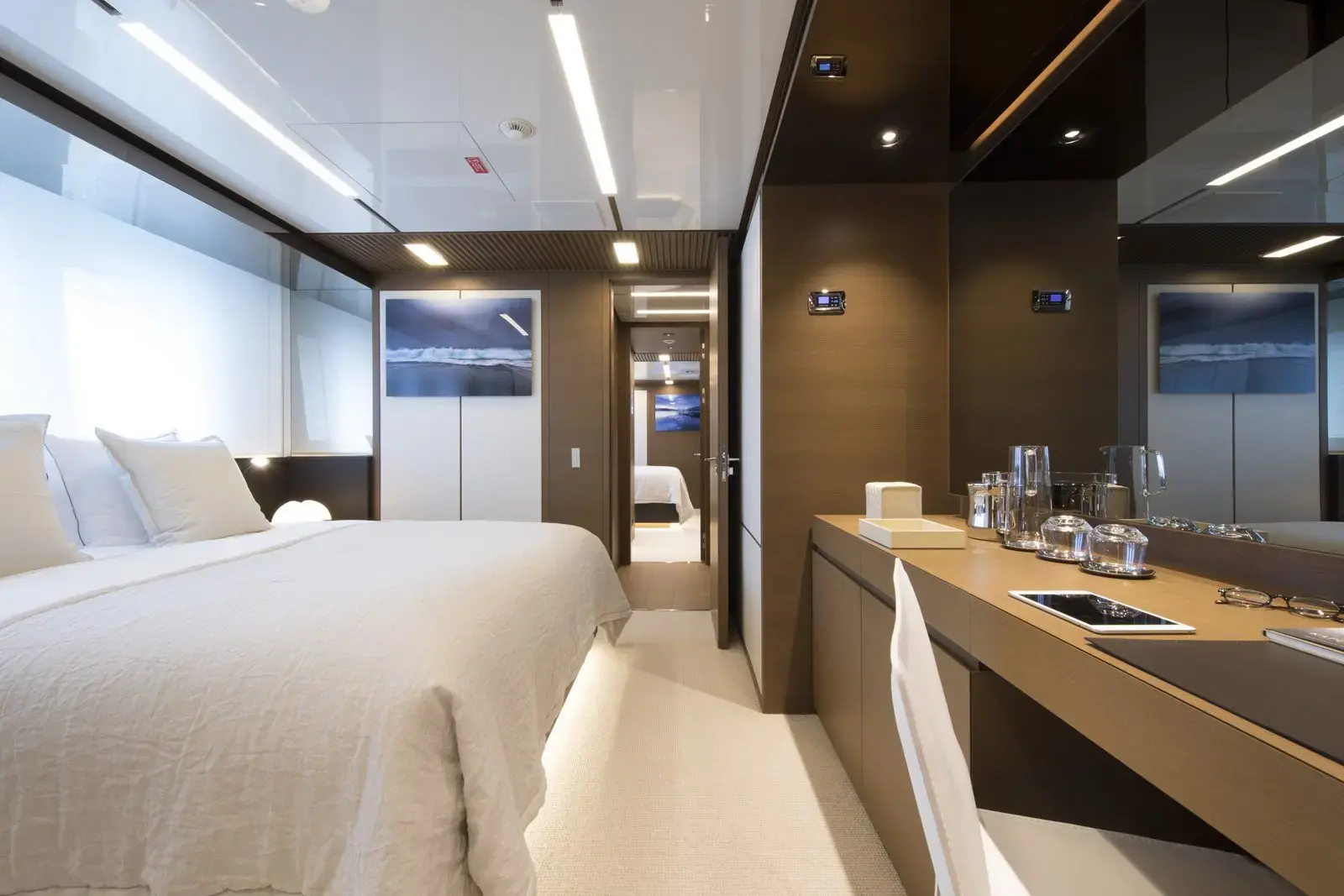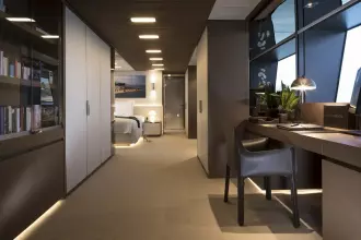 The 52Steel is a five-deck superyacht with endless customisation possibilities. The external lines, drawn in collaboration with Mauro Michieli’s Officina Italiana Design, are a natural evolution of the Sanlorenzo superyacht range, and it perpetuates Sanlorenzo’s refined features, elegance and technical innovations. The 52Steel’s profile impresses with simple clean lines and two rows of extensive windows on the main and upper decks. The glass side deck bulwarks allow for cleaner lines and abundant natural light inside.