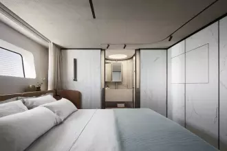 The entry-level of the revamped SD line, the yard’s range of semi-displacement shuttles, the SD90/s is the third chapter in a success story that began with the SD96 and SD118. With this new model, Sanlorenzo encloses in a smaller size a series of important features that are the result of ongoing stylistic and technological research, including hybrid motorisation, carried out by the company in an open and continuous dialogue with designers.
