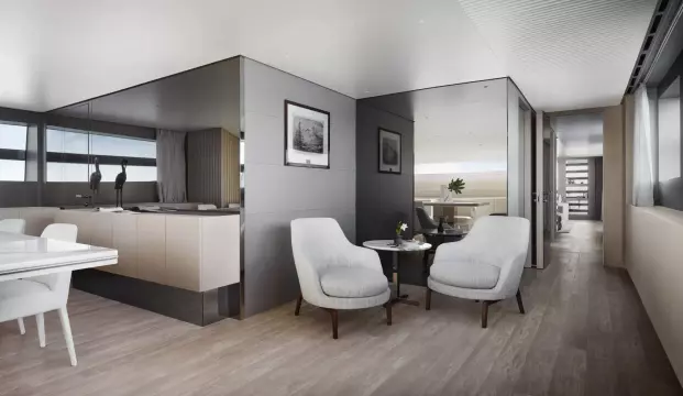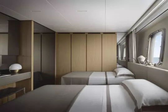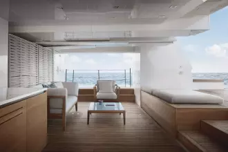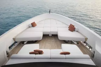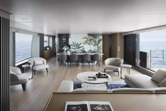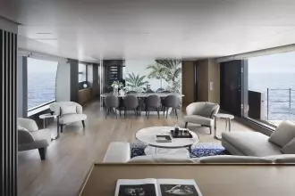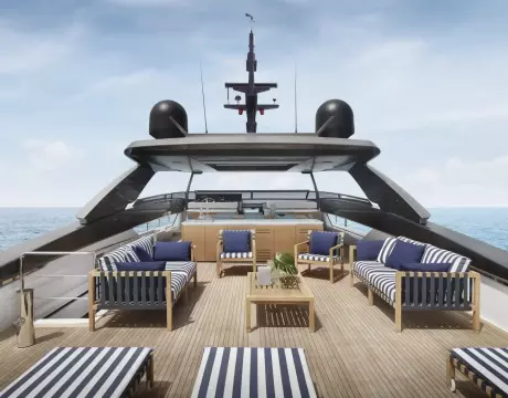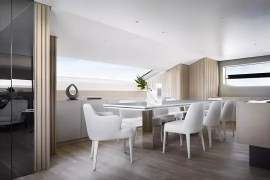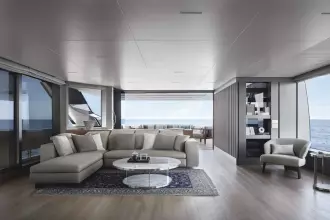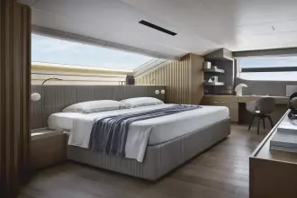 After having revolutionized nautical design with the launch of the world’s first asymmetrical yacht, Sanlorenzo continues to shape traditional on-board balances, taking the asymmetric concept to new expressive heights: space, comfort, functional quality, great flexibility of use and an effective connection between internal and external volumes are all combined in the SL120Asymmetric yacht, the brand’s new proposal for living that feels like hovering over the sea.