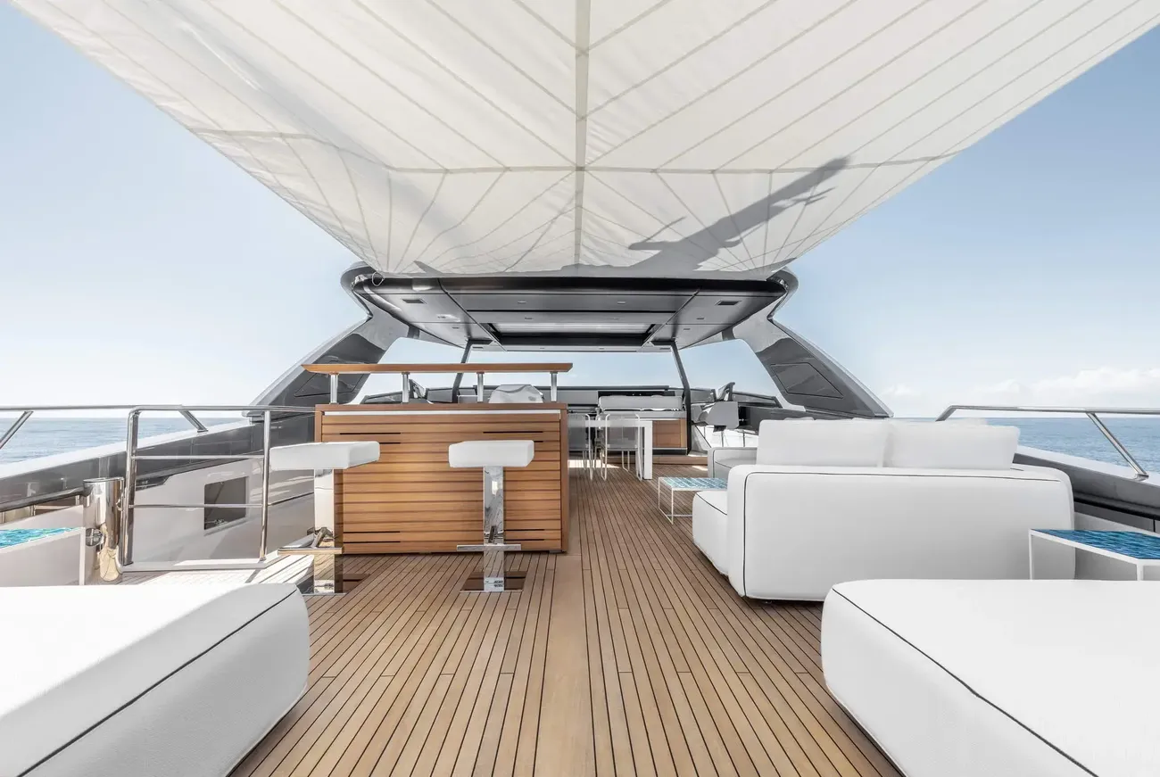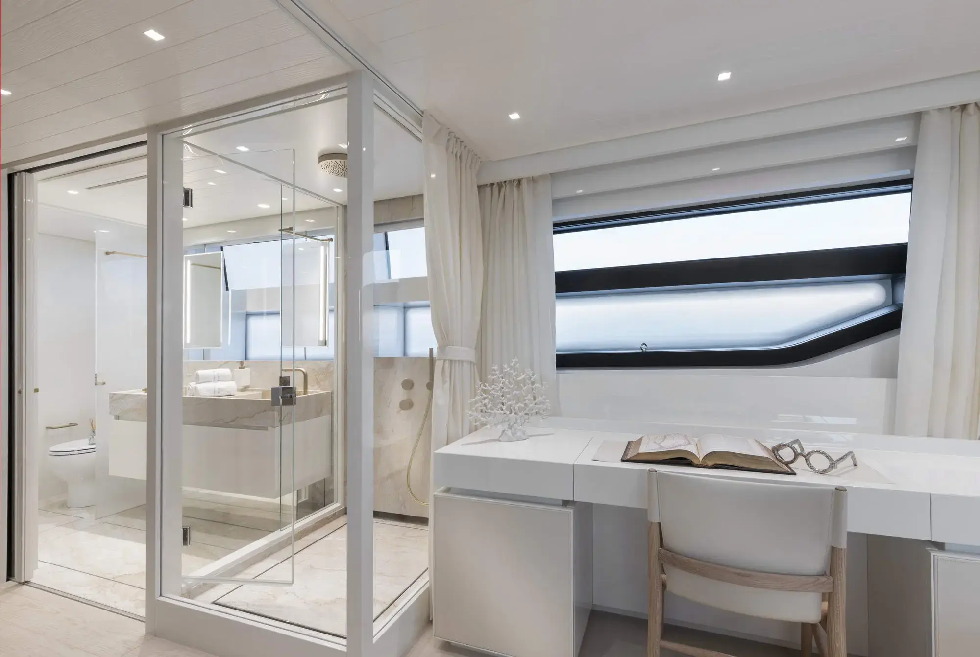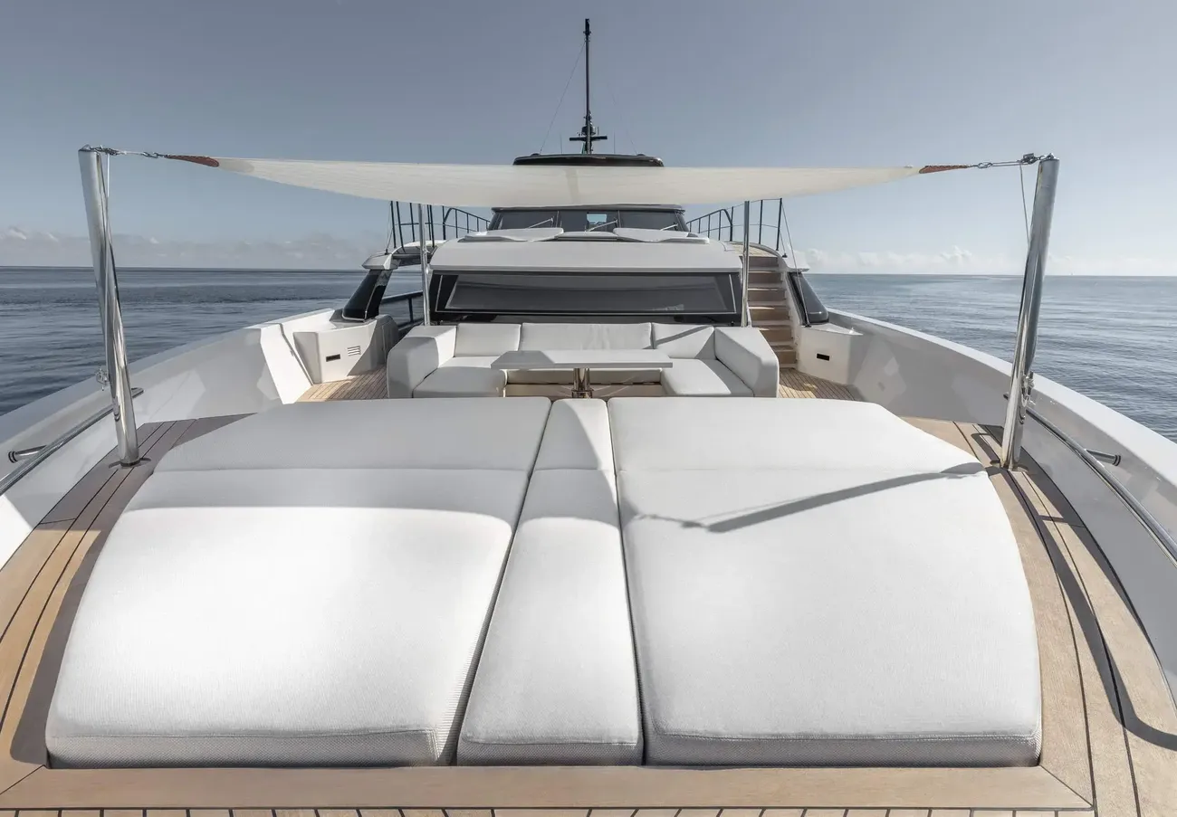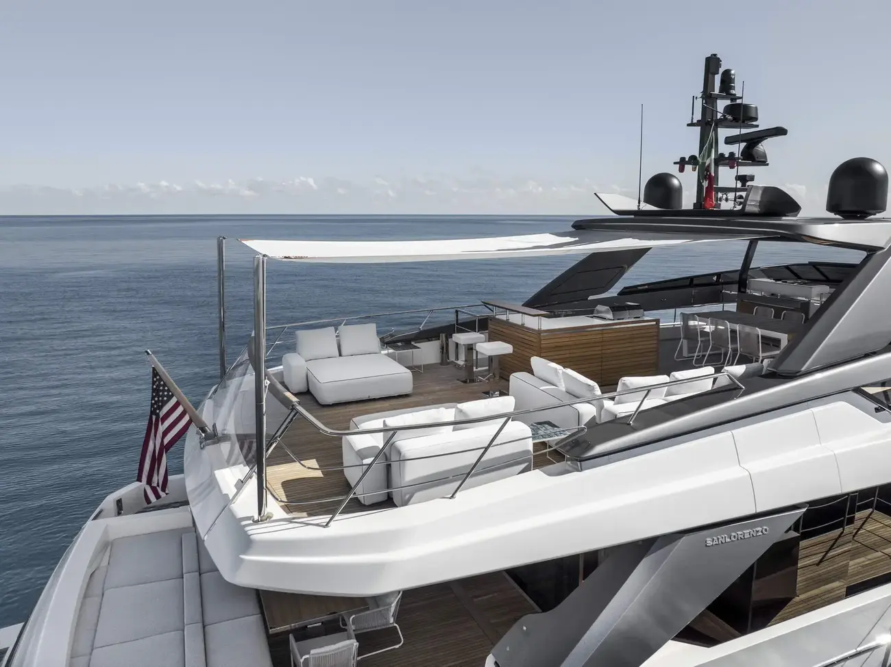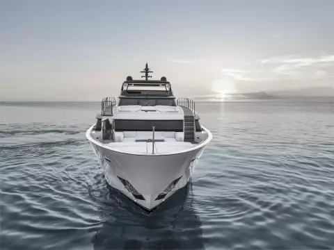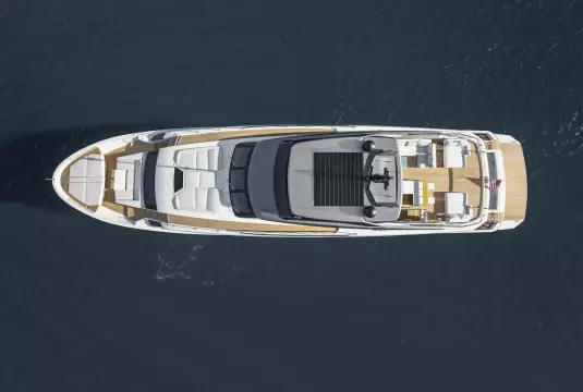The new SL106A maintains the distinctive characteristics of the asymmetrical version already present on board of its younger sisters, the SL96A and SL90A; it redefines the garage space at the stern, providing more space to house a jet ski, as well as the tender, and adds a 12 sqm sunbathing platform, in total connection with the sea. The layout of the lower deck has also been enhanced, with increases in the surface area in the guest cabins, the saloon area and the engine room.