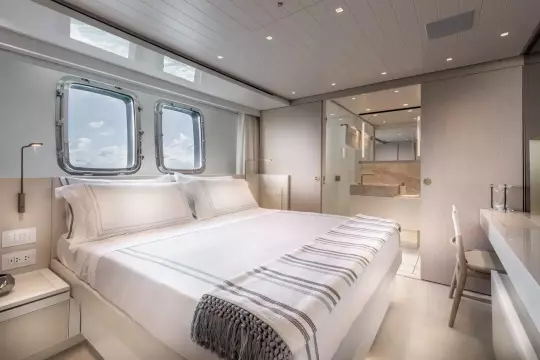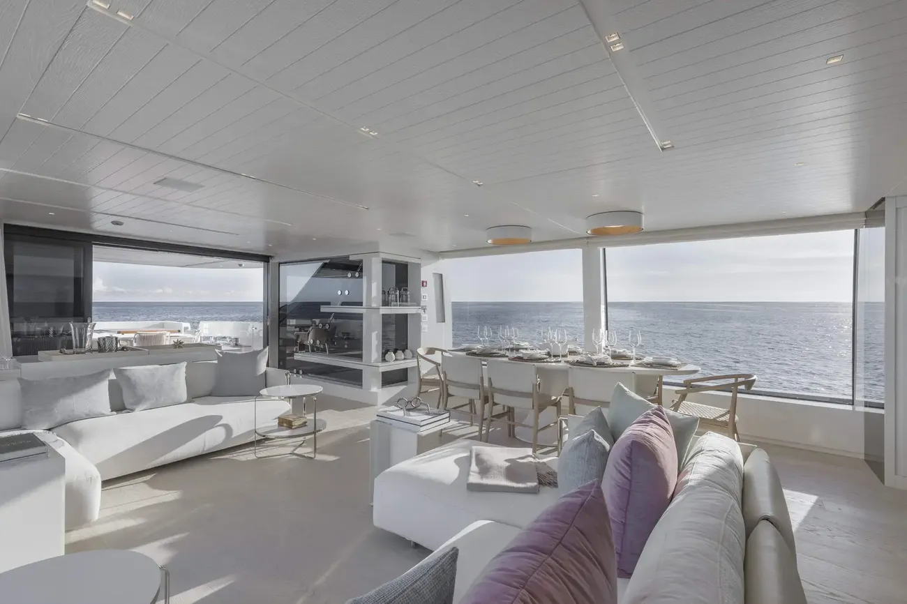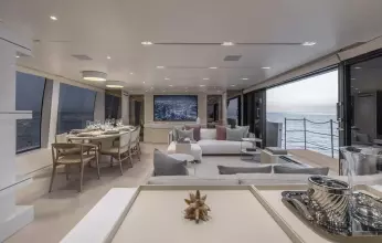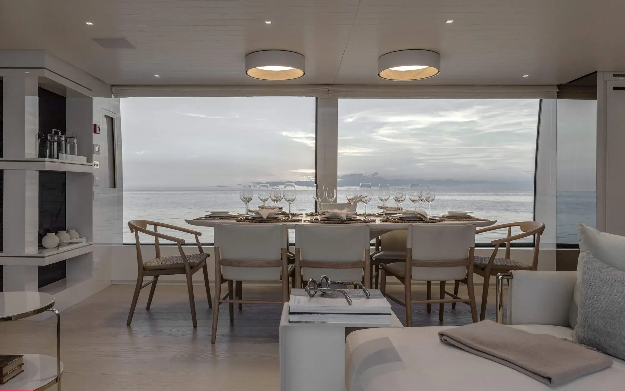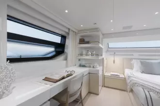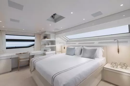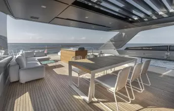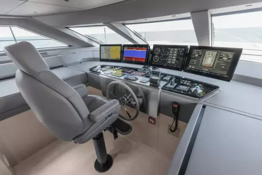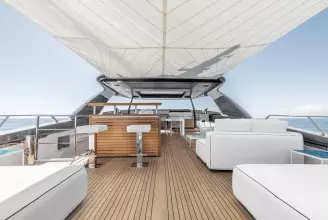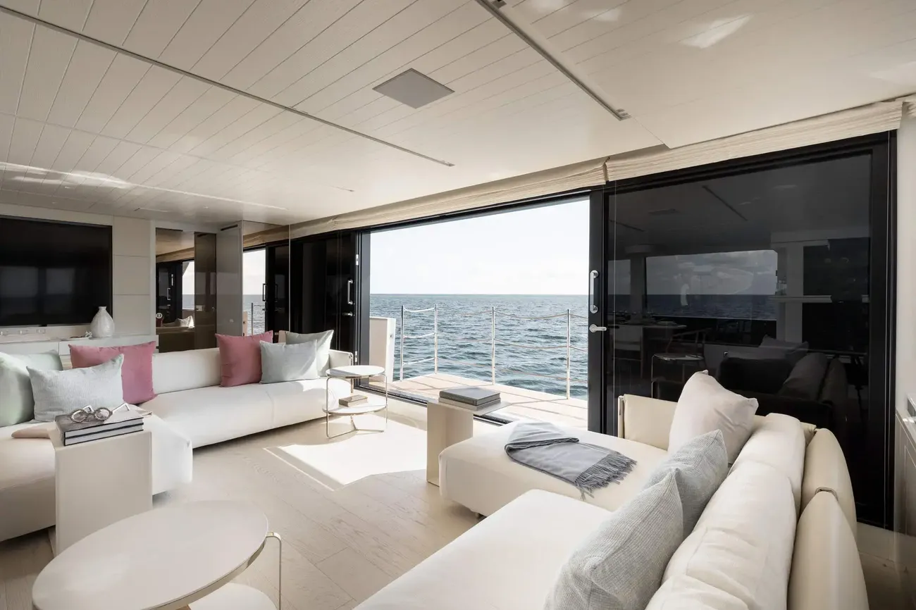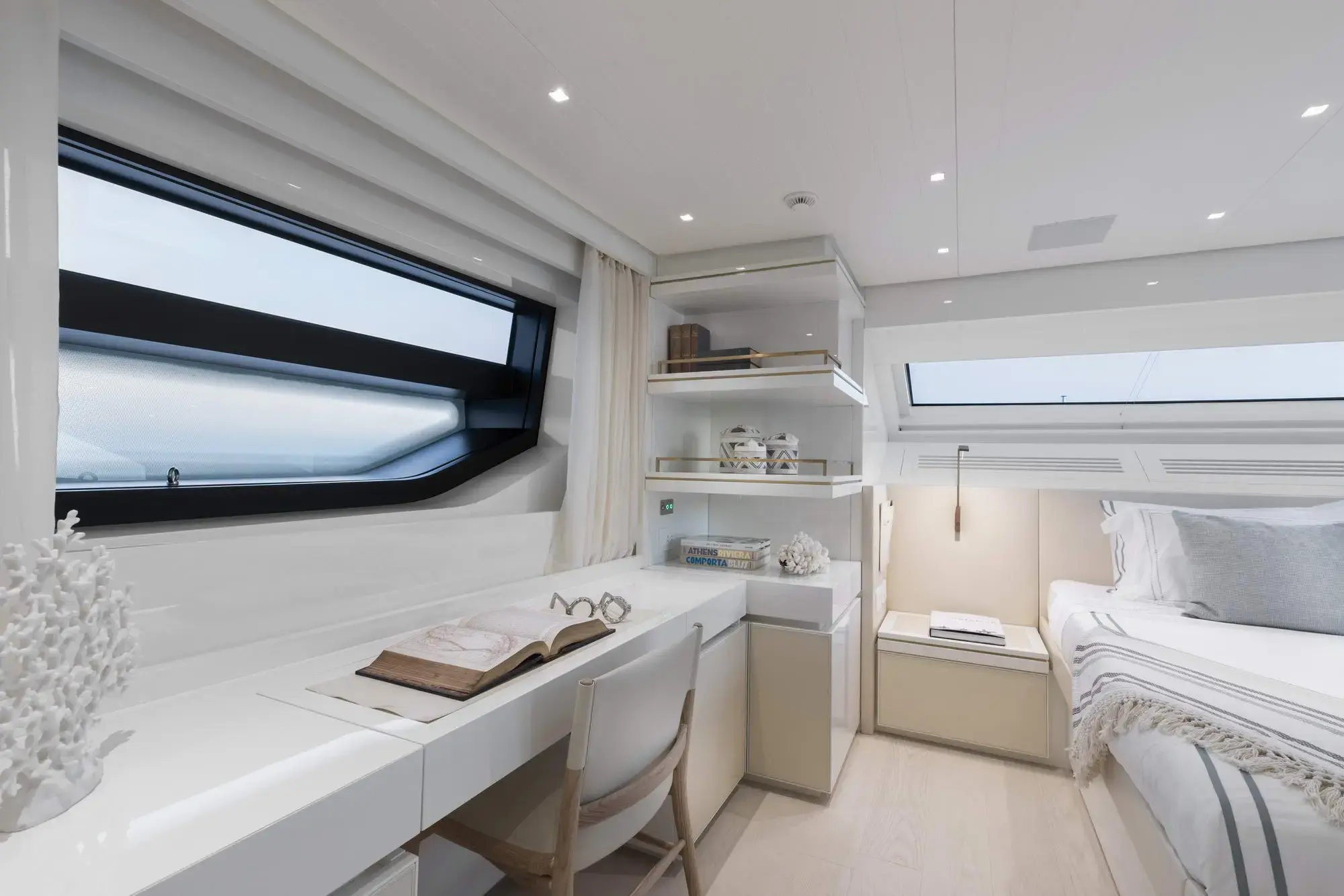 The new SL106A maintains the distinctive characteristics of the asymmetrical version already present on board of its younger sisters, the SL96A and SL90A; it redefines the garage space at the stern, providing more space to house a jet ski, as well as the tender, and adds a 12 sqm sunbathing platform, in total connection with the sea. The layout of the lower deck has also been enhanced, with increases in the surface area in the guest cabins, the saloon area and the engine room.