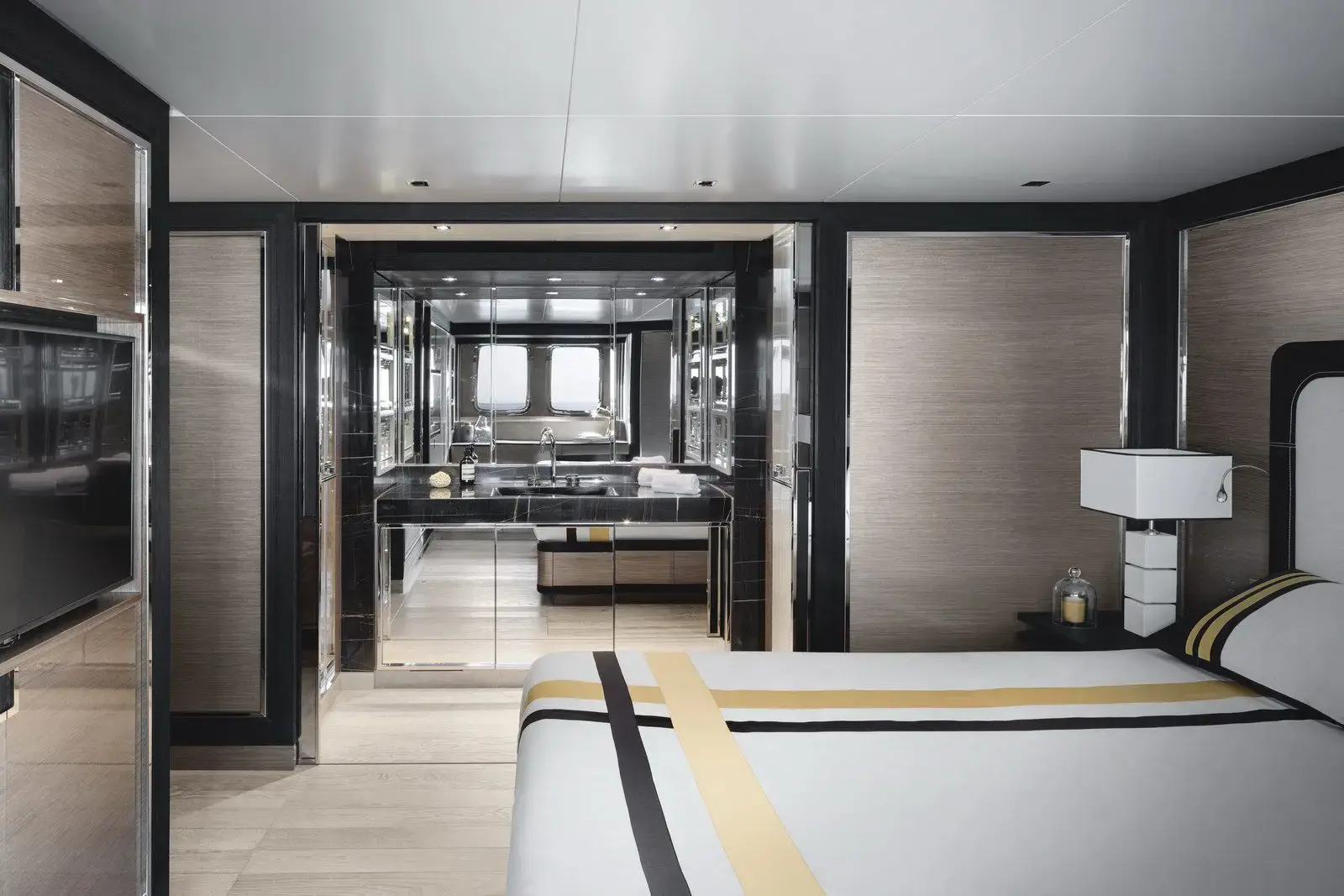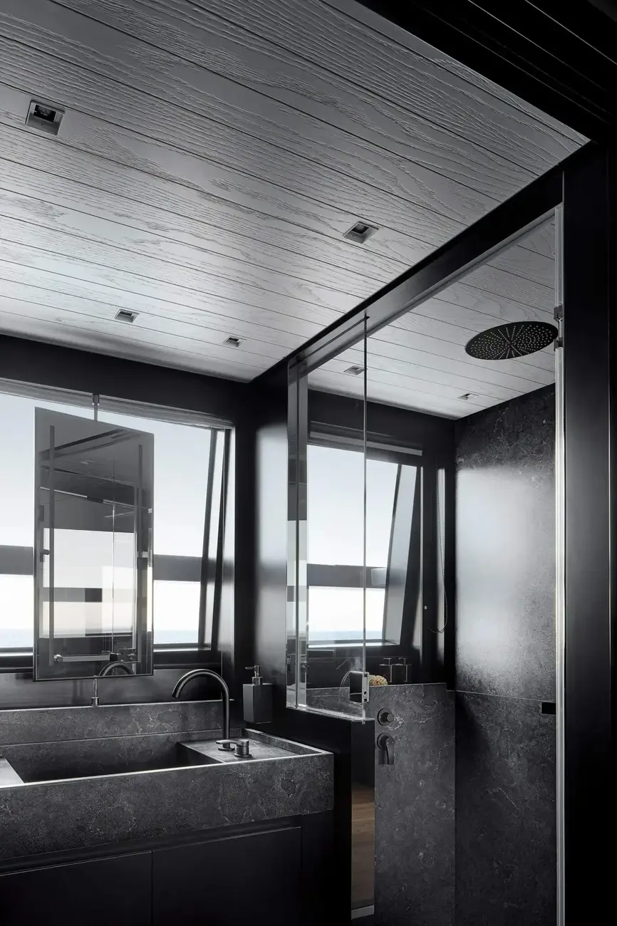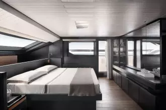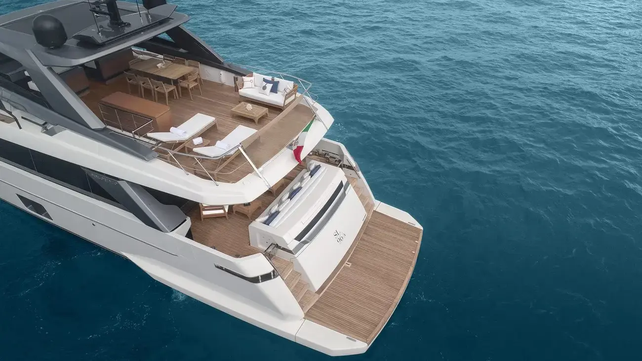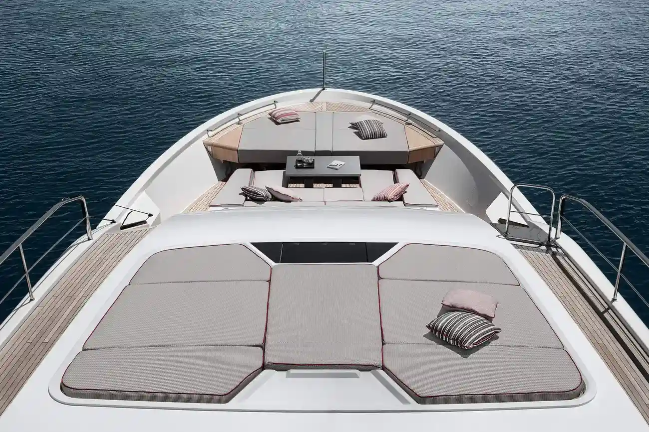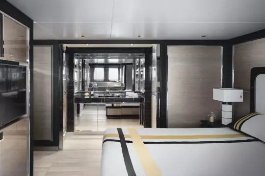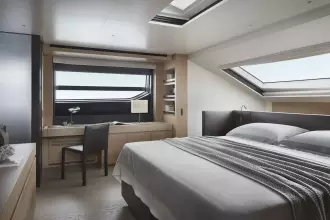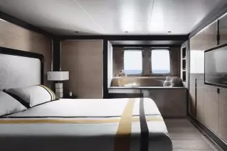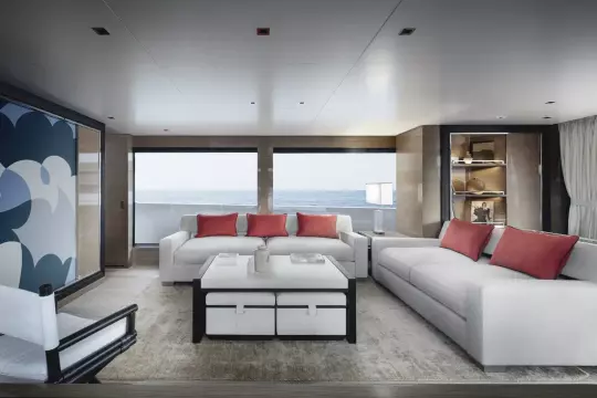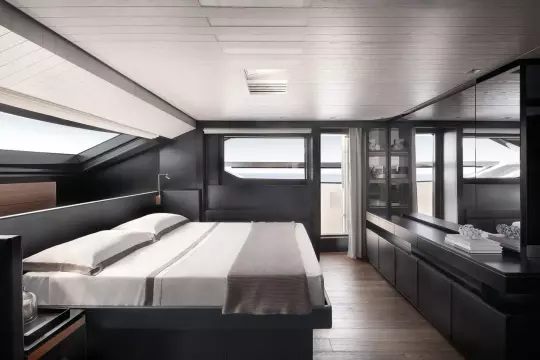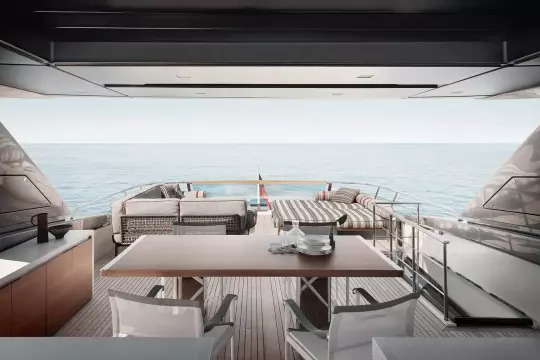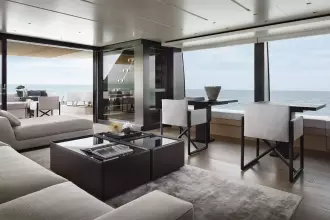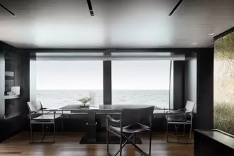 With the aim of making more use of the interior spaces and having better communication with the outside world, SL96Asymmetric rethinks the canonical layout of a yacht, retaining only the side decks on the starboard side and eliminating the portside one, which is carried on the roof of the superstructure, allowing 10sqm of surface space to be recovered to the benefit of the interiors, through this asymmetric configuration. Something which has never been tried before.