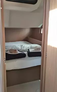 - Two aft cabins, each with double beds and hanging lockers