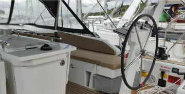 - Cockpit seats in teak, and teak on swimming platform