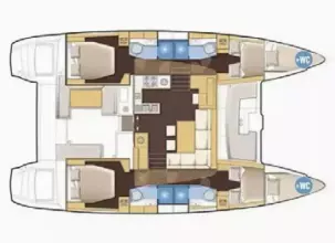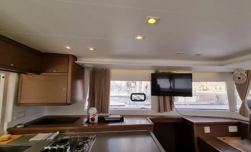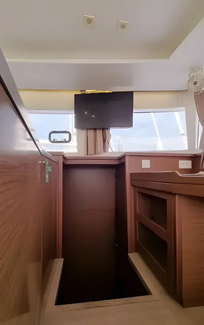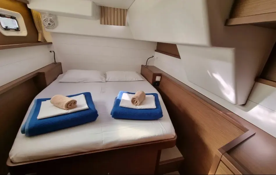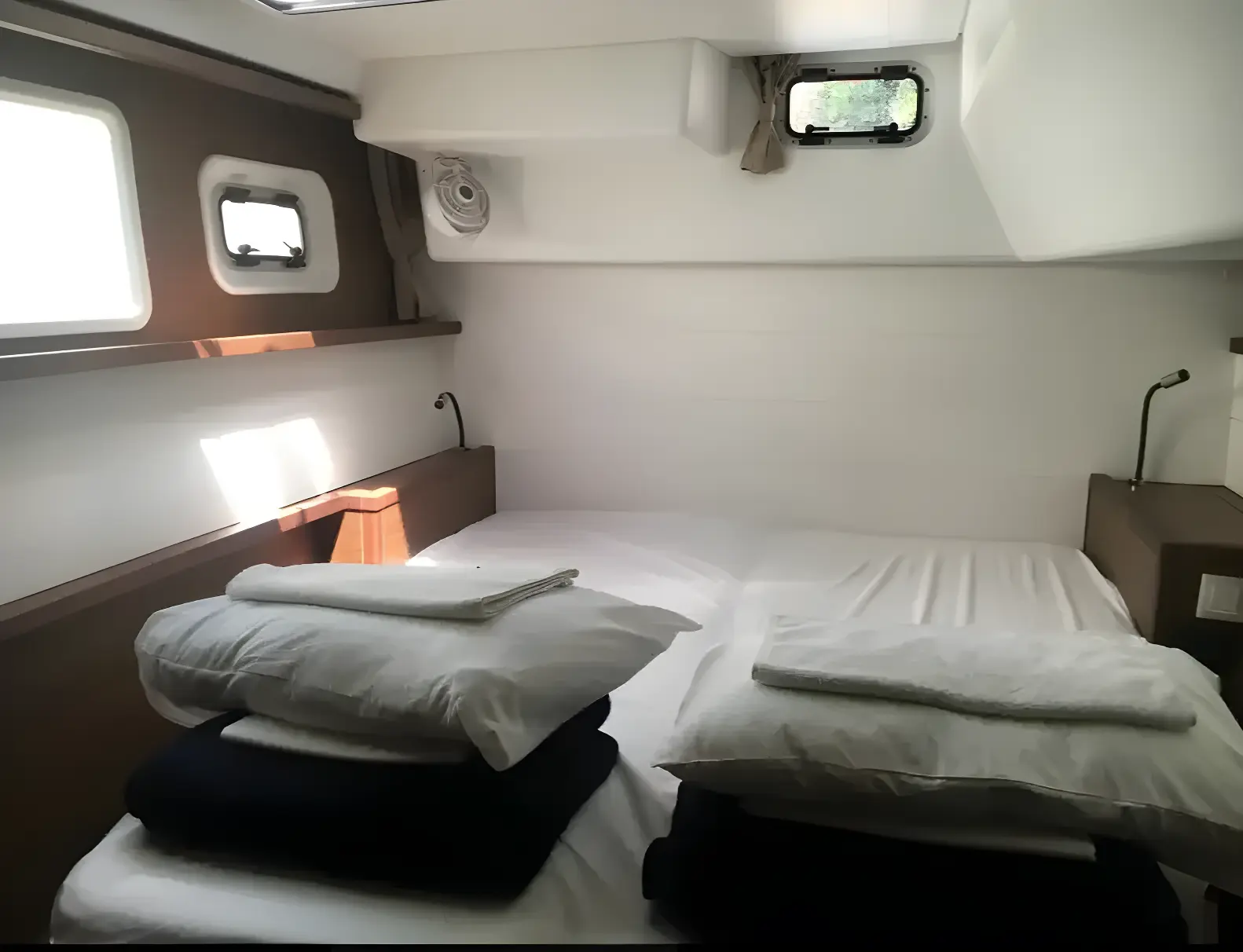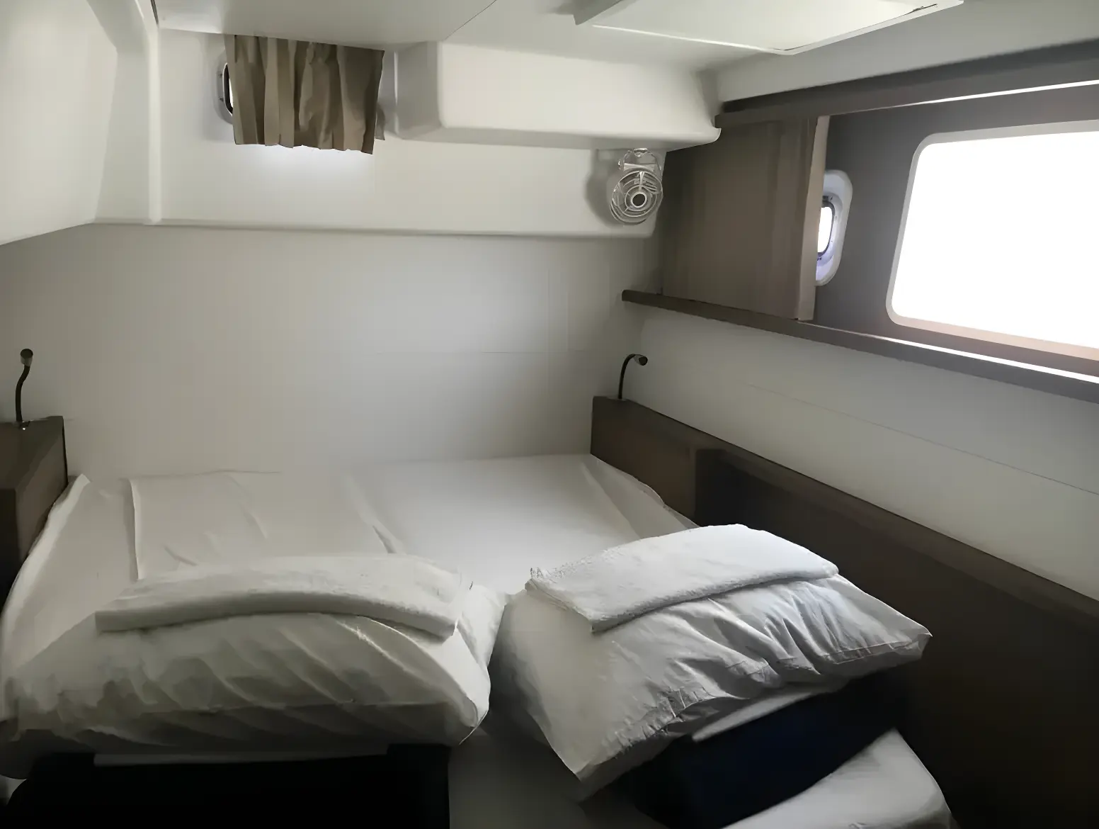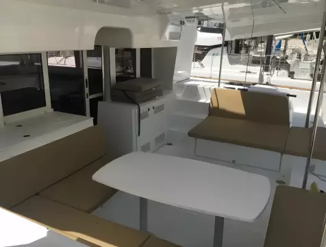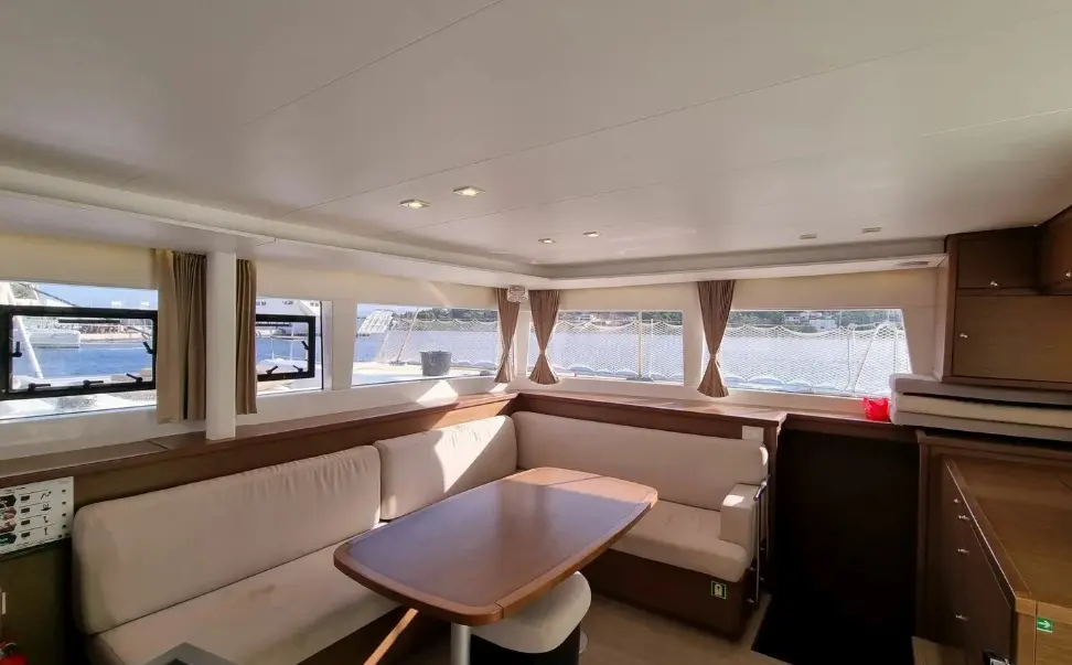 - L-shaped saloon settee with saloon table that can be converted to 2 additional berths + 2 chairs