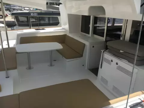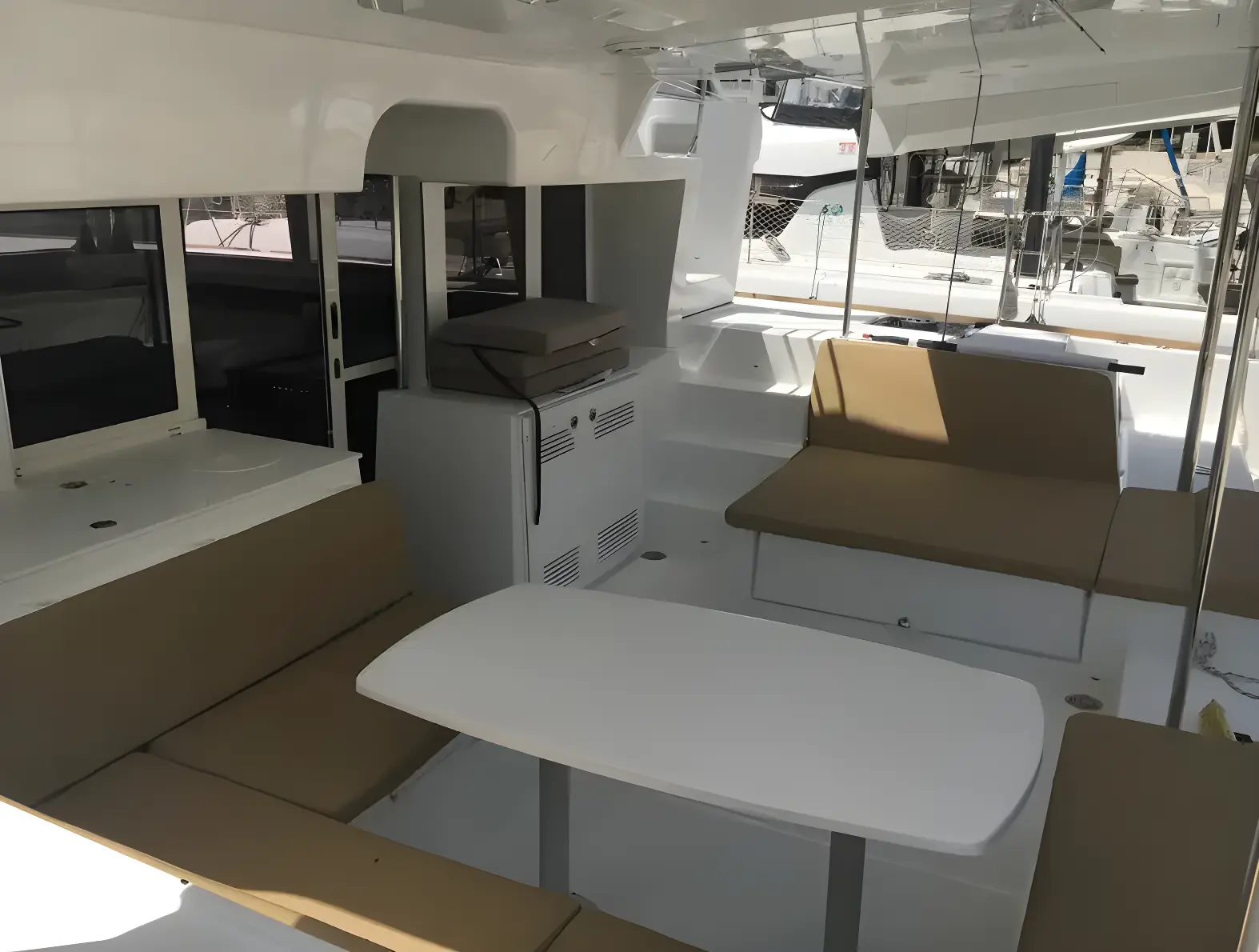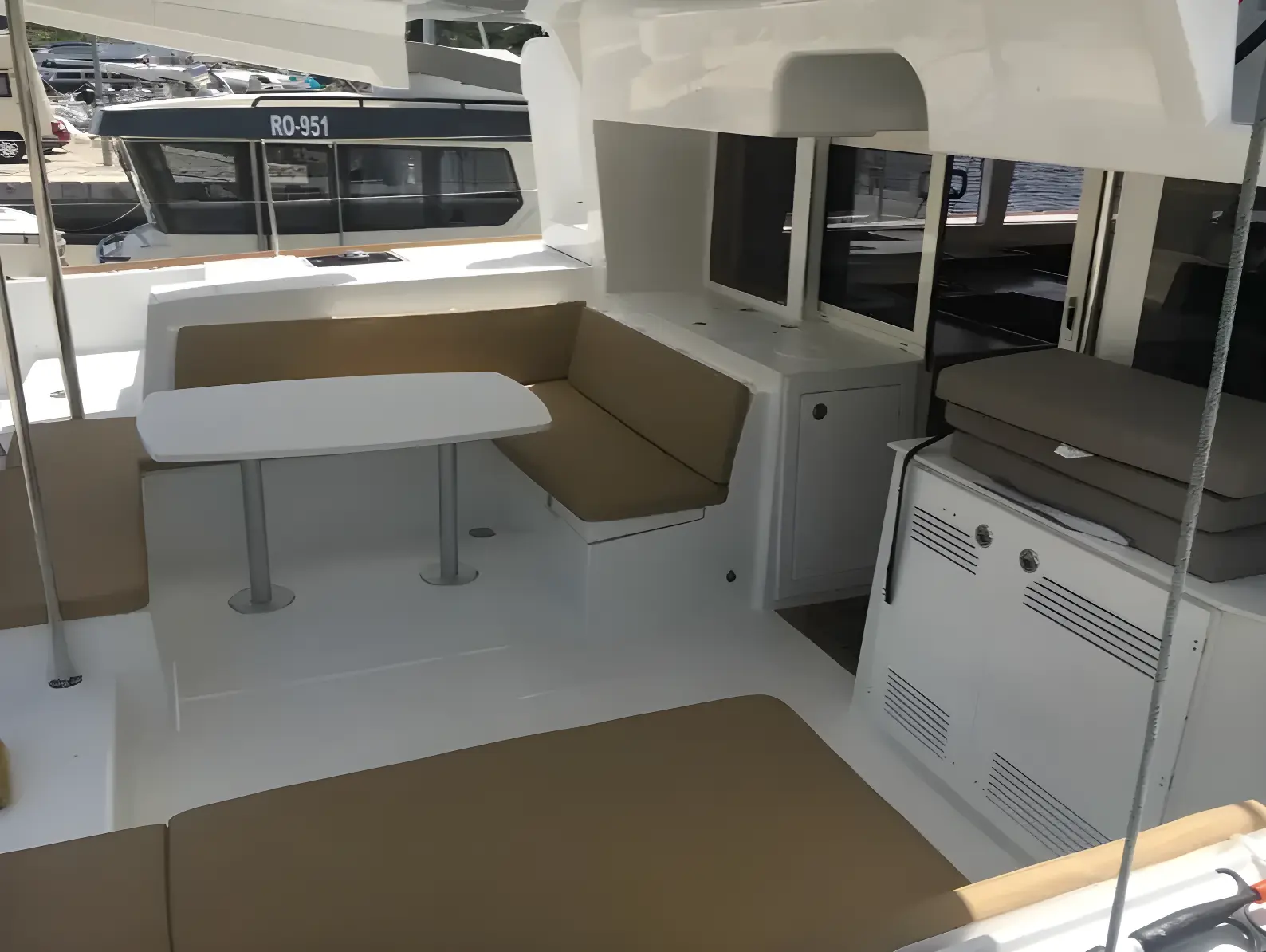 - U-shaped cockpit settee with cockpit table & on the opposite side straight shaped cockpit settee for lying down