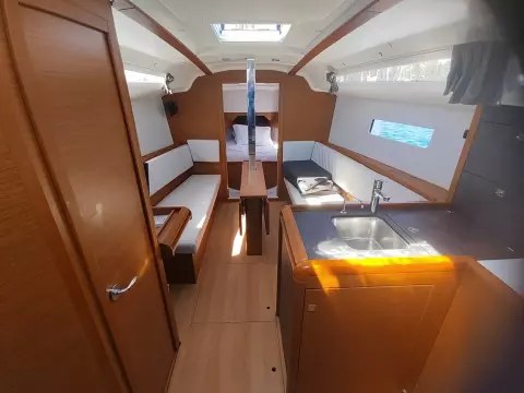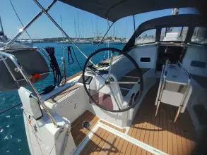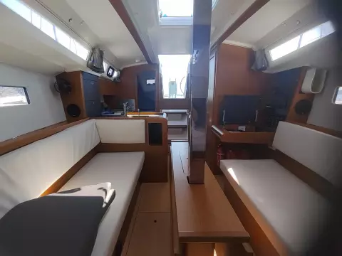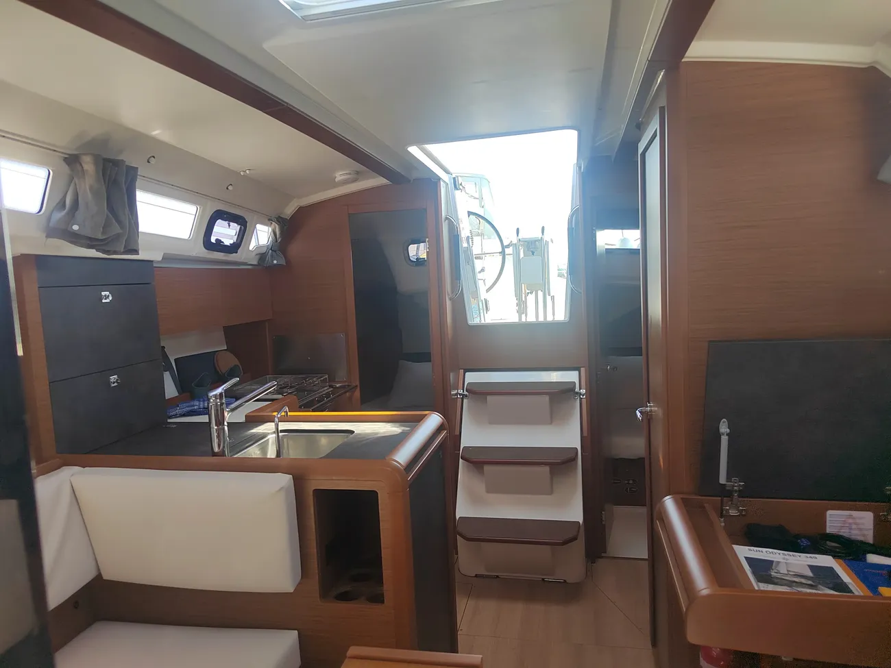 The Jeanneau Sun Odysseyis a modern and agile cruiser, perfectly blending performance, comfort, and ease of use. Designed by Marc Lombard, it features a sleek hull with hard chines and twin rudders for excellent control and responsiveness. The cockpit is spacious and ergonomic, ideal for both solo sailors and small crews. Below deck, it offers a bright and cleverly arranged interior with quality finishes. It's an ideal choice for coastal cruising and weekend adventures.
