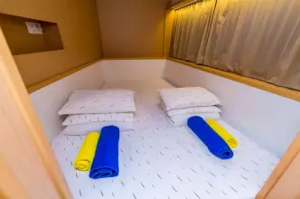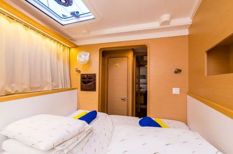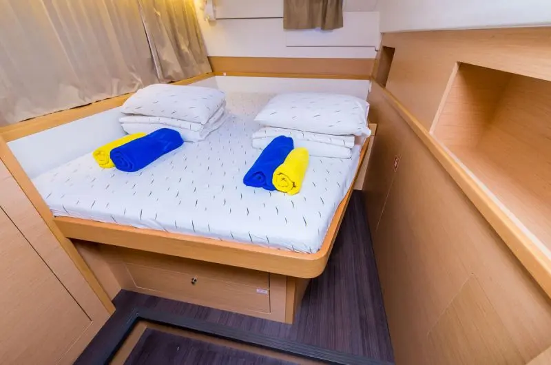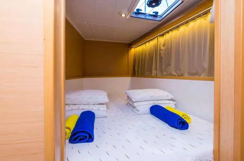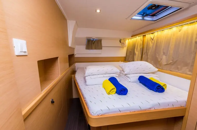 -Catamaran can accommodate up to 11 people in 1 single cabin, 4 double cabins and a saloon with 2 extra beds.