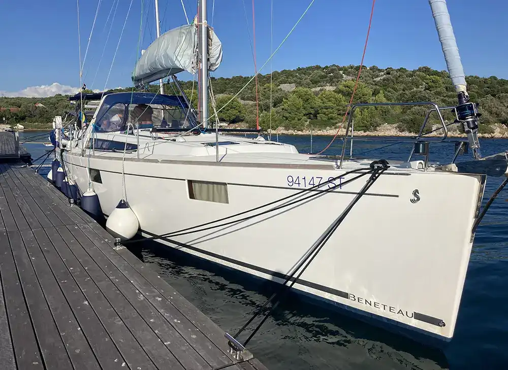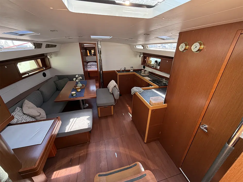 The layout is the popular owner’s version with three spacious double cabins plus a Pullman cabin with bunk beds. In the saloon, two additional berths can be arranged, giving a total of up to ten sleeping places – perfect for family or larger groups. The yacht is equipped with a Yanmar 80 hp engine with saildrive, bow thruster, electric windlass, and electric halyard winch. Onboard you will also find a complete B&G navigation package with dual plotters, autopilot, VHF with AIS, and multifunction displays at the helms. Interior comforts include electric toilets, water heater, fridge/freezer, galley with stove/oven, diesel air heating, and a Fusion sound system. The Oceanis 48 is a well-designed and spacious model with excellent sailing performance, and this particular yacht is offered in fully operational condition with all systems working. As always when buying a yacht, an independent survey is recommended, but this represents a very attractive opportunity to acquire an Oceanis 48 Owner’s Version at a competitive price – ready for new adventures in the Mediterranean or Northern waters.