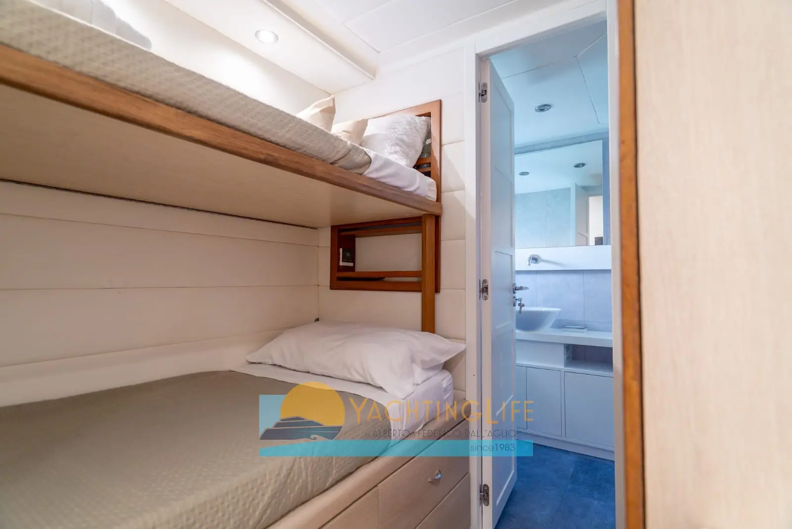 - Equipped with 4 cabins and 4 bathrooms, plus day toilet on the main deck.