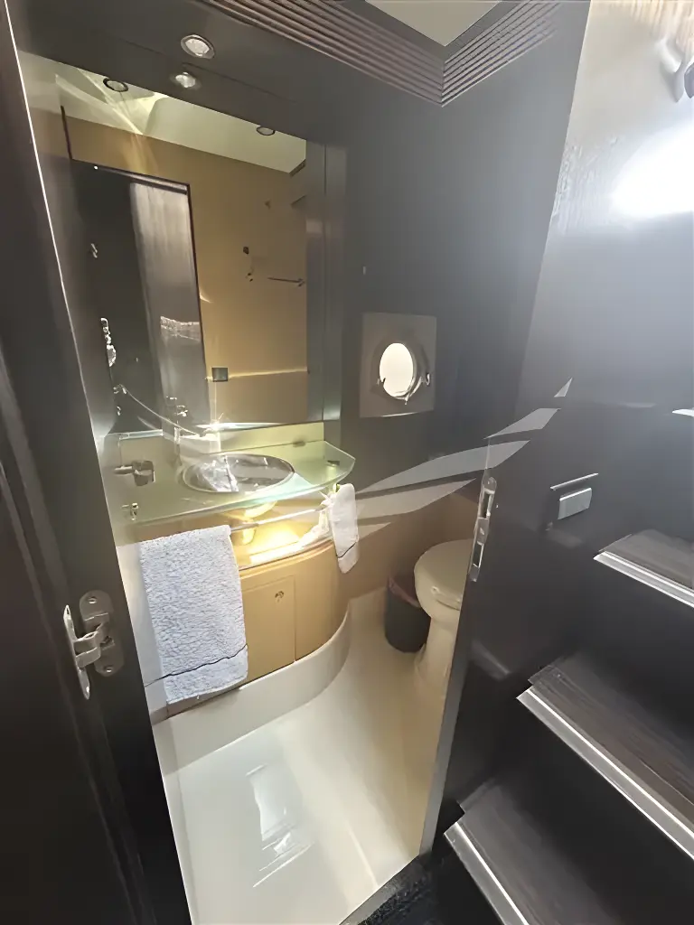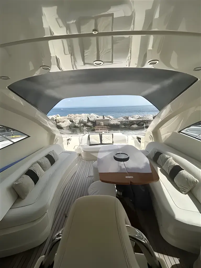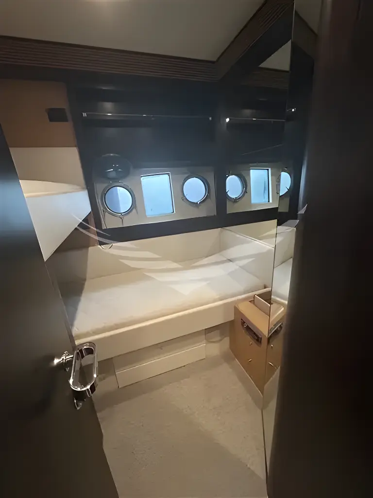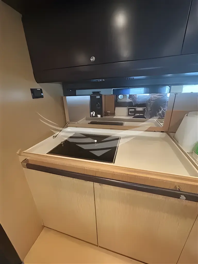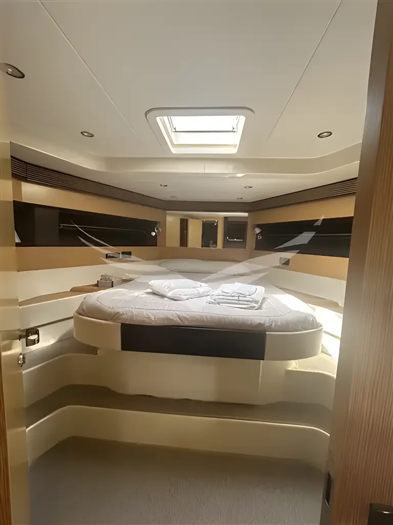 Works performed: 2025: - New chain counter - Replaced sunroof pistons - Replaced the external air conditioning sensor 2024: - Brought the hull to zero - Added the second autuclave Navigation equipment: Depth Sounder (Echo Raymarine Tridata), GPS (Raymarine c120), Autopilot (Raymarine), VHF Radio (Simrad RS82). Staging and technical: Gangway (Idraulica Besenzoni), Tender (William 2.85 motore Idrojet 40 ore moto). Domestic Facilities onboard: Air Conditioning (in pozzetto). Entertainment: TV Ready (TV dinette Aquos Sharp + TV Aquos Sharp in cabina VIP + 1 TV Sharp in cabina armatoriale), 2 Hi-Fi (Sony + Panasonic + in cabina VIP e armatoriale), 3 TV (Aquos Sharp). Kitchen and appliances: Galley, Deck Refrigerator, Refrigerator (Isotherm), Dishwasher. Upholstery: Bimini (Top centrale).