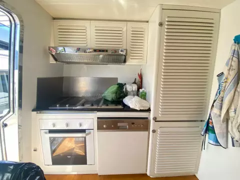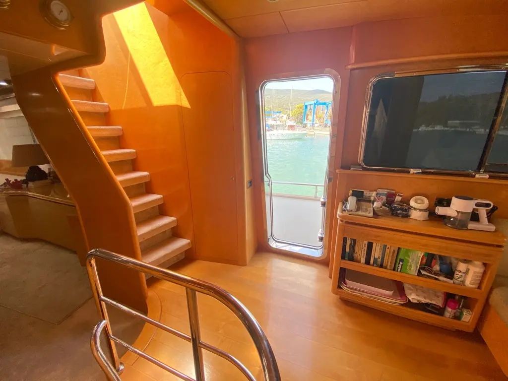 The fully equipped galley is located immediately after the dinette on the right side with a side door. Opposite the galley we find the second side door that facilitates internal boat circulation and maneuvering without passing through the dinette.