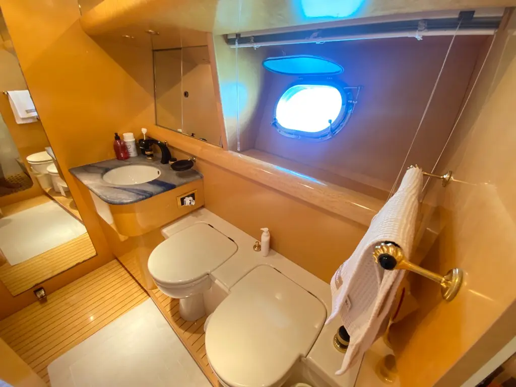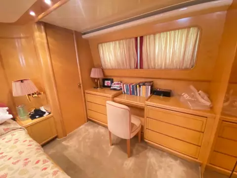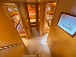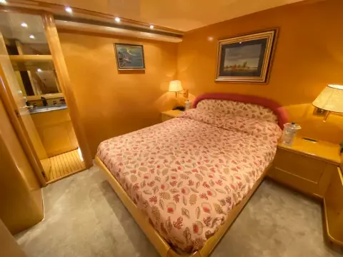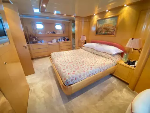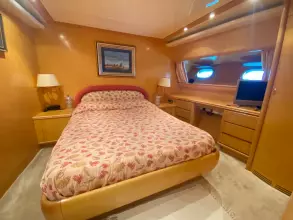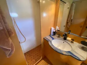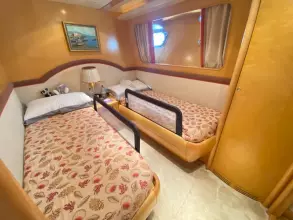Master stateroom is located amidships, with Beauty area, walk-in closet, TV, Bathroom with separa shower stall and Bidet. VIP stateroom forward with TV, Closet., private bathroom with shower stall and Bidet. Two guest cabins with twin beds, each cabin has private bathroom with separa shower stall and Bidet.