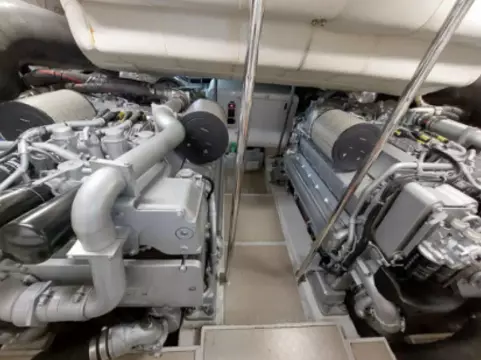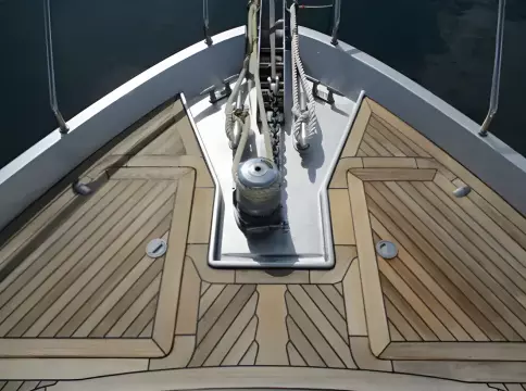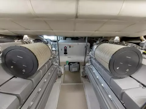 Although the interior is well cared for and comfortable, the guest most accustomed to outdoor boating will be greeted by an oversized aft sundeck over a garage.