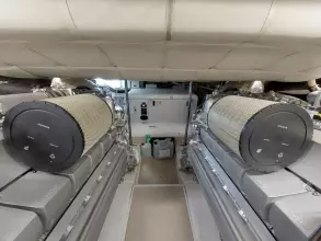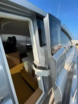 In the sleeping area we find a full-beam master stateroom lit by large vertical windows, integrated into the bulwarks, and a chaise longue, which allows you to enjoy relaxing in the cabin but at the water's edge.